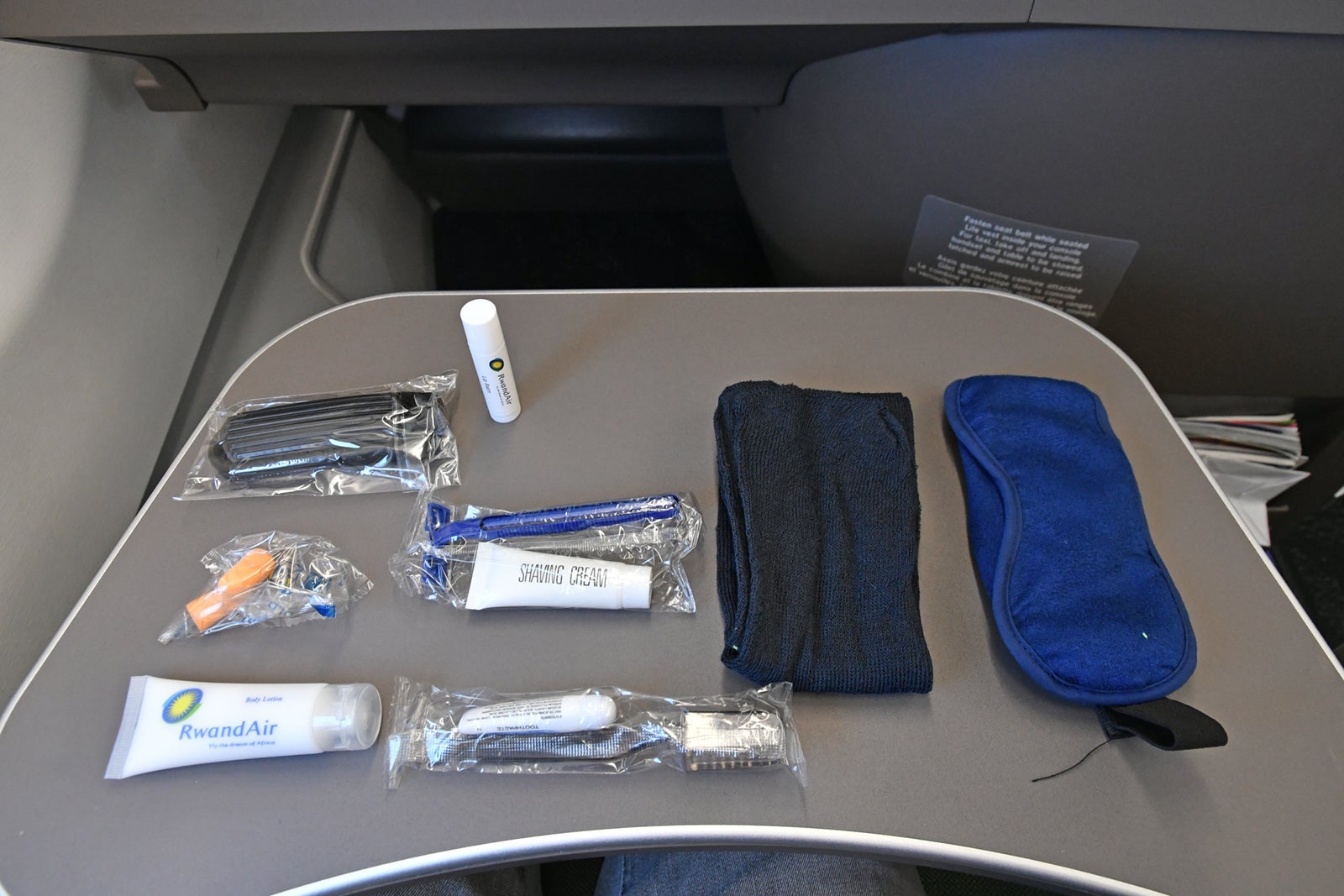Besides the usual things — eye mask, socks, toothpaste and toothbrush, ear plugs, lip balm, moisturizer — it contained a safety razor and shaving cream.