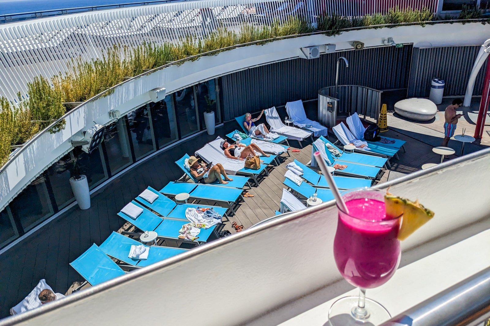 Not so with a hammock. I'm 6 feet tall and can fully recline in one of Scarlet Lady's bright red, ethically sourced hammocks. The rocking of the hammock combined with the rocking of the ship at sea, especially early in the morning when the sun was low and the temperature perfect, was incredibly soothing. I found myself plotting how to get more hammock time – rather than simply forgetting I had a balcony as I busied myself around the ship.
