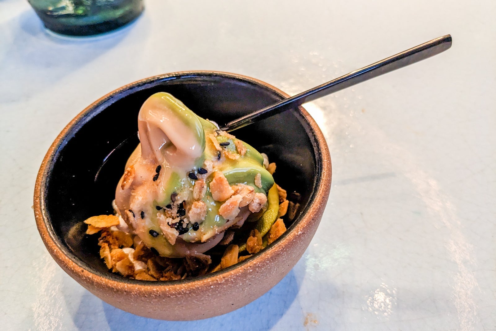 Favorites at our table were the dakgangjeong (crispy chicken), octopus, kalbi marinated beef short ribs and macha tea - black sesame twist ice cream with mini marshmallows and black sesame granola.
