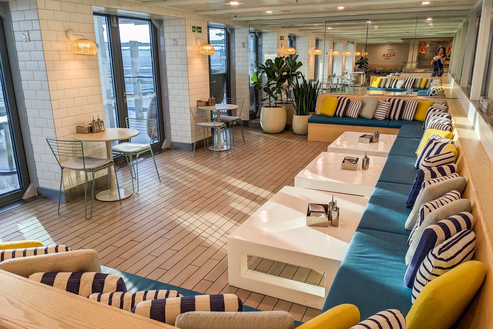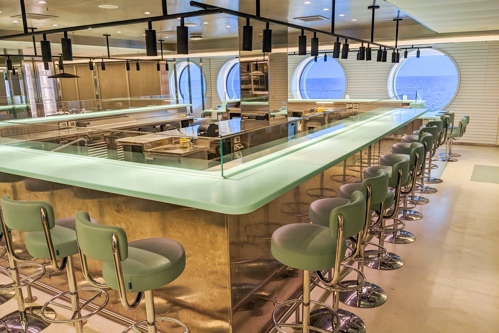 The ship takes an unconventional approach to cruise ship dining, with no main dining room, no buffet and no extra-fee restaurants. In this way, your onboard dining experience will feel like a land-based trip, but with fewer Yelp reviews to read. You'll likely eat in a new venue every night, most with an attached bar for pre-dinner drinks, and need to make reservations in advance or take your chance as a walk-in, either early or late. I loved both the food and the variety of options.
