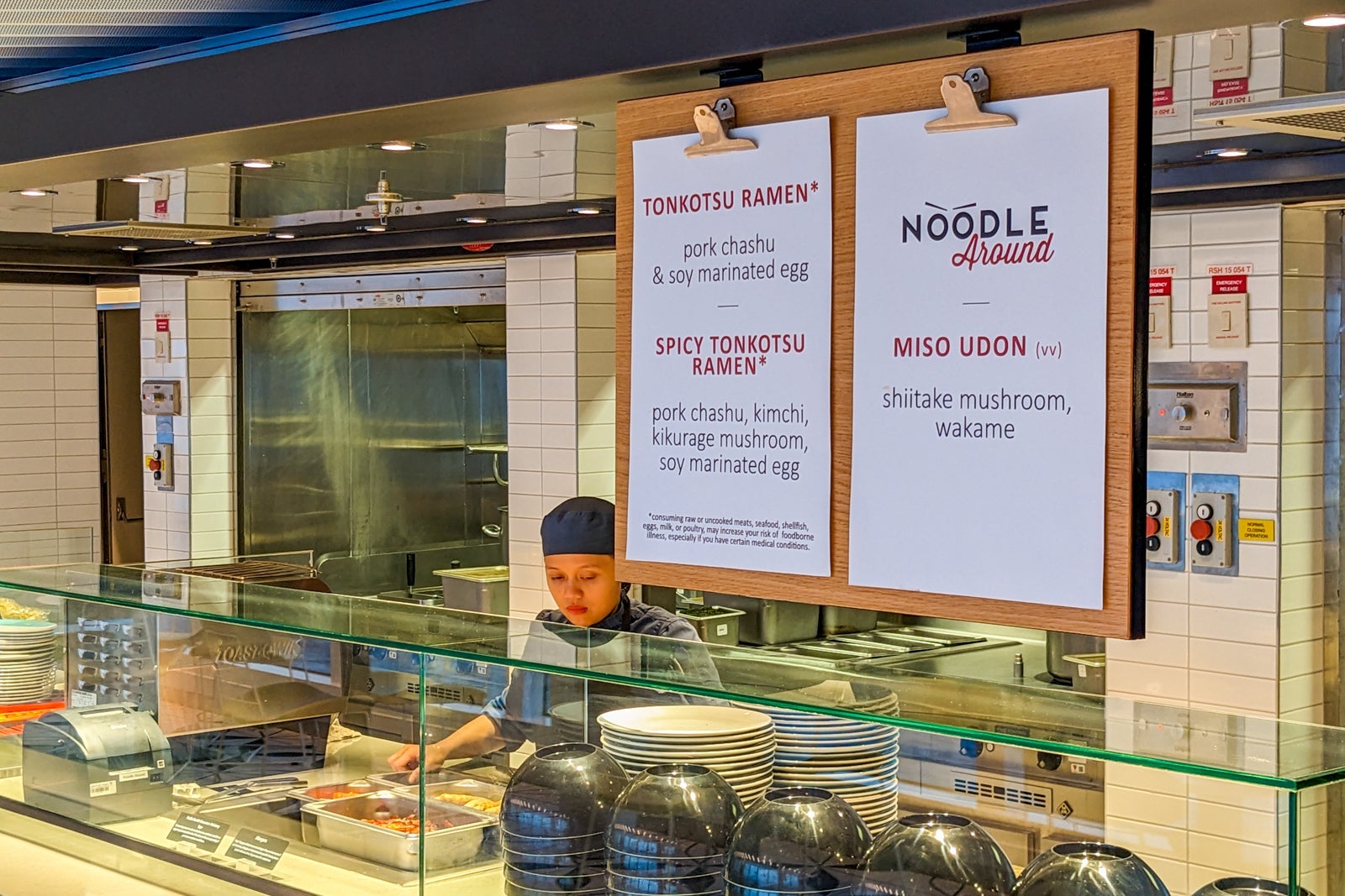 This concept works well when you have time to kill or the venue is empty. But when The Galley is packed, such as in the morning on a port day, it can take forever to catch the attention of a server and longer than you'd expect to receive your meal. You can find grab-and-go boxes in several locations on board, but the food selection is limited.