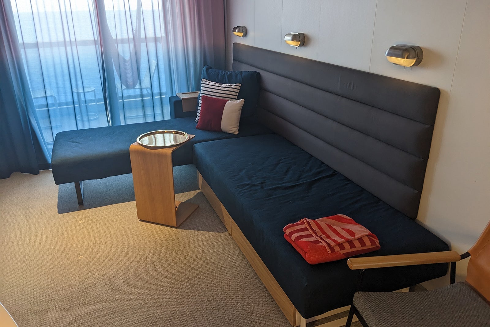 While practically no one uses the daybed layout, the arrangement means you're sleeping on a couch cushion rather than a plush mattress. My bed on Scarlet Lady was not the comfiest I've had on a cruise, but the sheets and duvet were fine and I slept well.