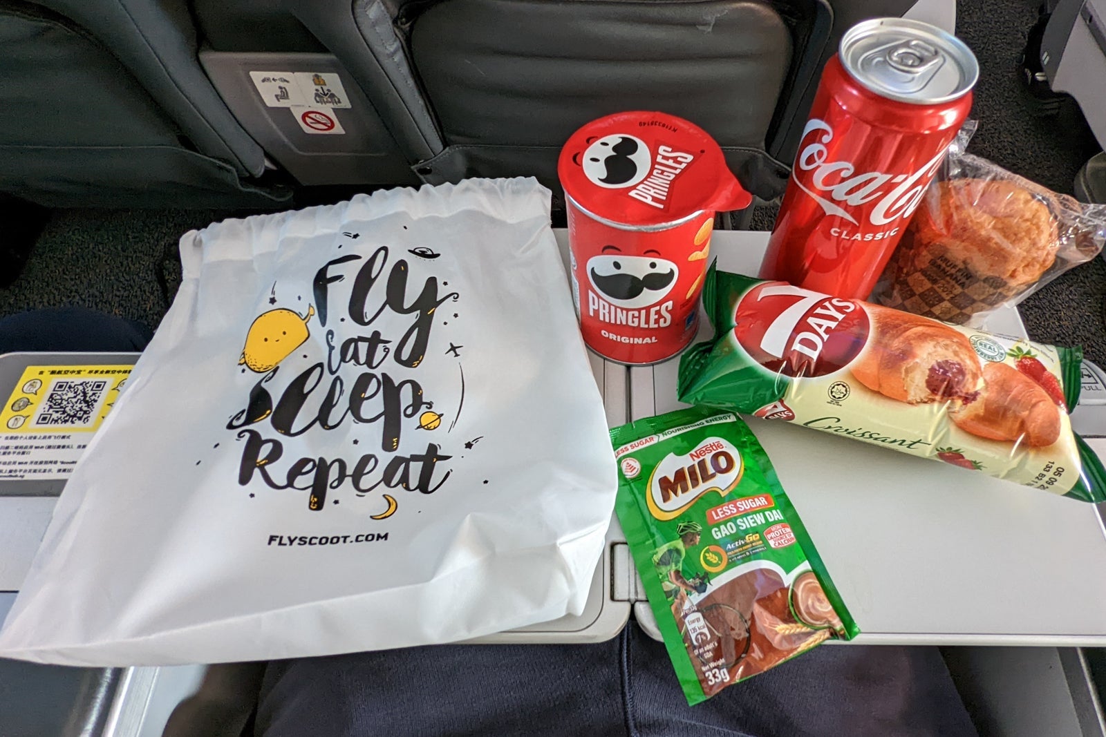 Before we landed in Bangkok, all ScootPlus passengers continuing on to London were handed a snack pack consisting of a can of Coca-Cola, a banana muffin, a sachet of Milo, a can of Pringles and a croissant. While nothing gourmet, it was an unexpected surprise and a nice gesture for this long journey.