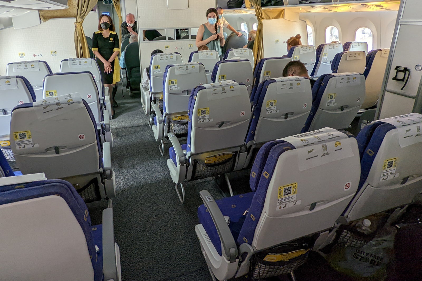 I was curious as to how the stop in Bangkok would work. Around two-thirds of the aircraft disembarked in Thailand, with instructions from the cabin crew that those continuing on to London should remain on board. The cleaning crew then arrived with a flurry of activity, creating a chaotic atmosphere as they vacuumed and wiped around us. In fact, I felt like I was in their way. They quickly left and a fresh crew, as well as hundreds of new passengers, boarded.