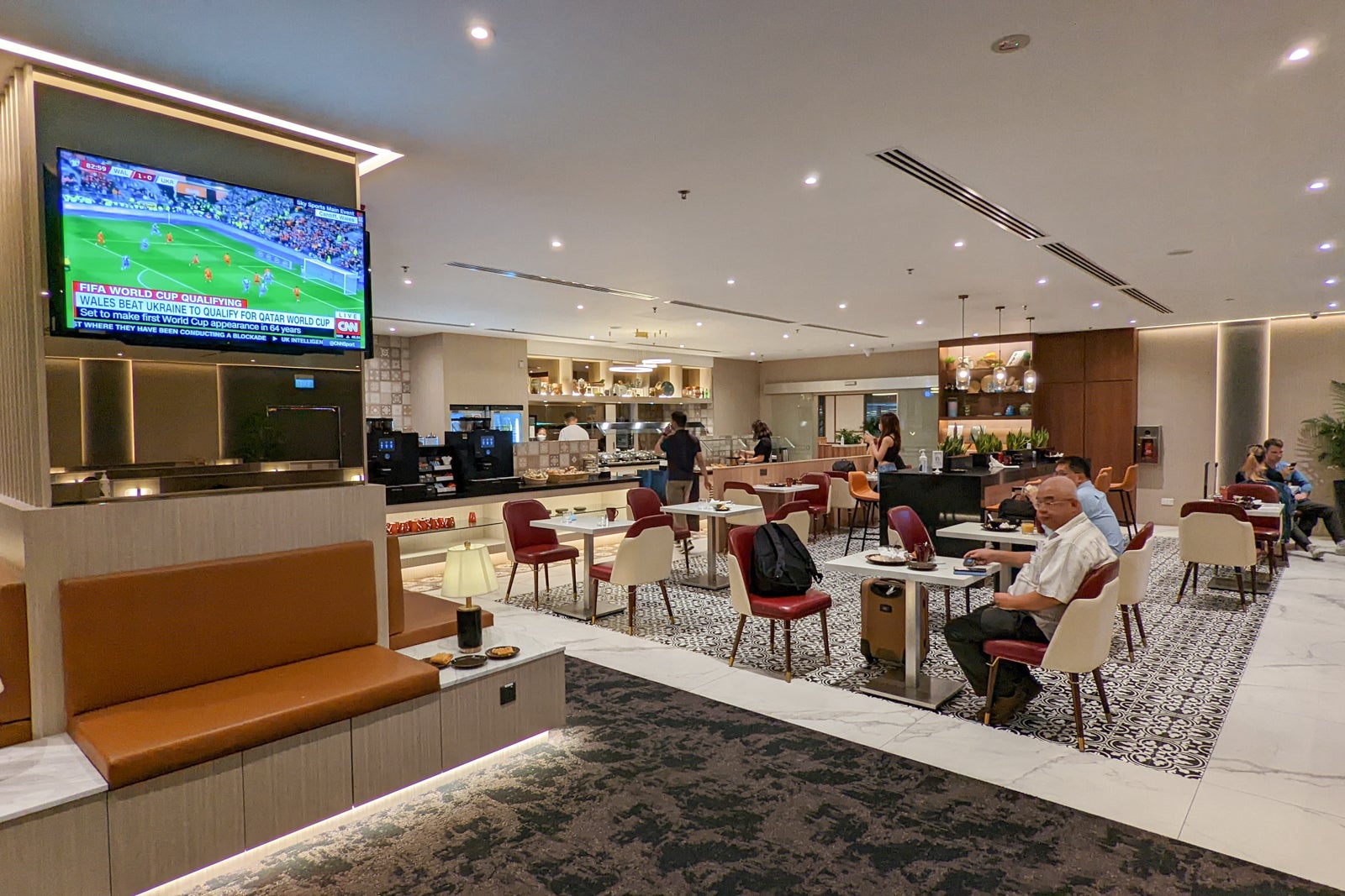 ScootPlus does not include any lounge access, but I knew my Priority Pass membership gained me entry to some high-quality airport lounges. I chose the SATS Lounge, which was a modern and pleasant space to grab a quick morning coffee and a local pandan cake for a breakfast snack.