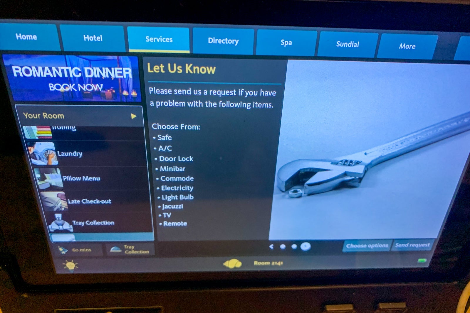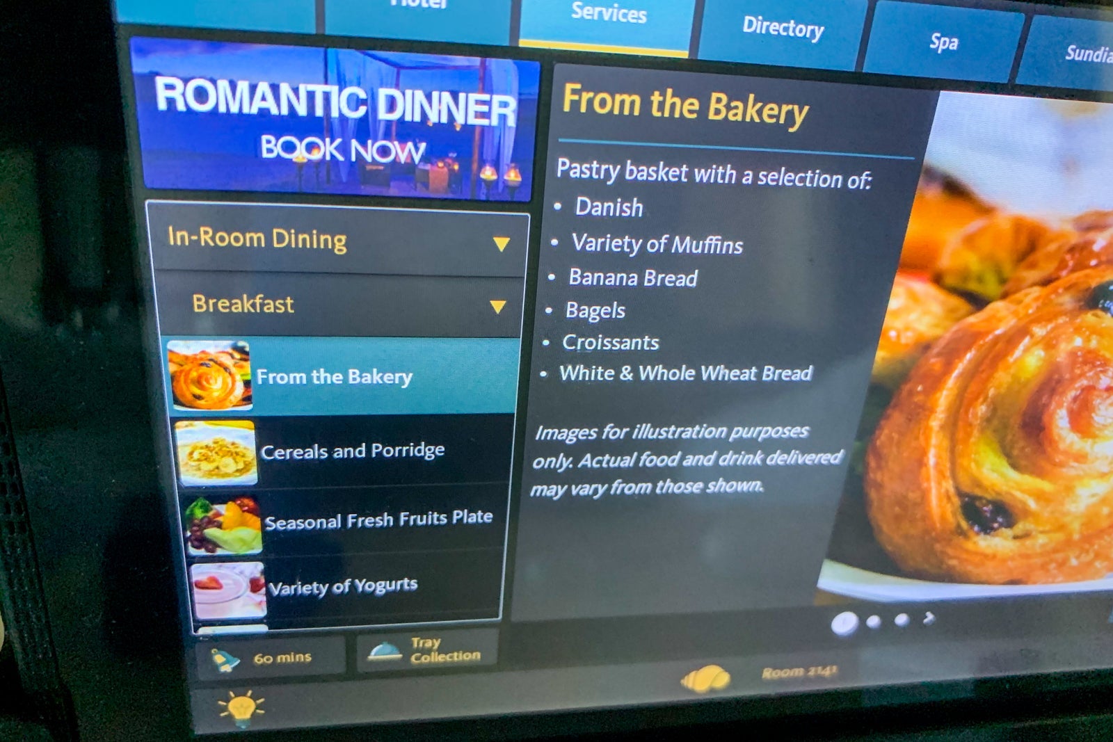 Note that you order room service via a touchpad. You can also call, though I found calls weren't always picked up quickly — if at all.