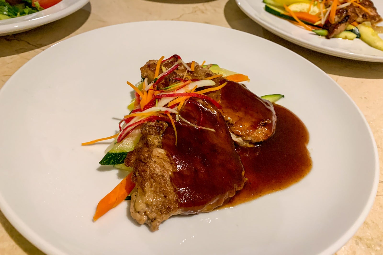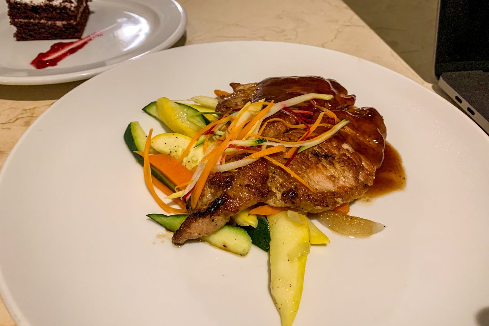 Since I was dining alone, that's mostly what I stuck to during my stay. The quality of the food was surprisingly good even if the service was spotty. I enjoyed the lean barbecue pork chops and an island-style grilled chicken breast was moist, if a little bland. The Black Forest dessert I tried was a bit dry and the house salad with mango vinaigrette was forgettable.