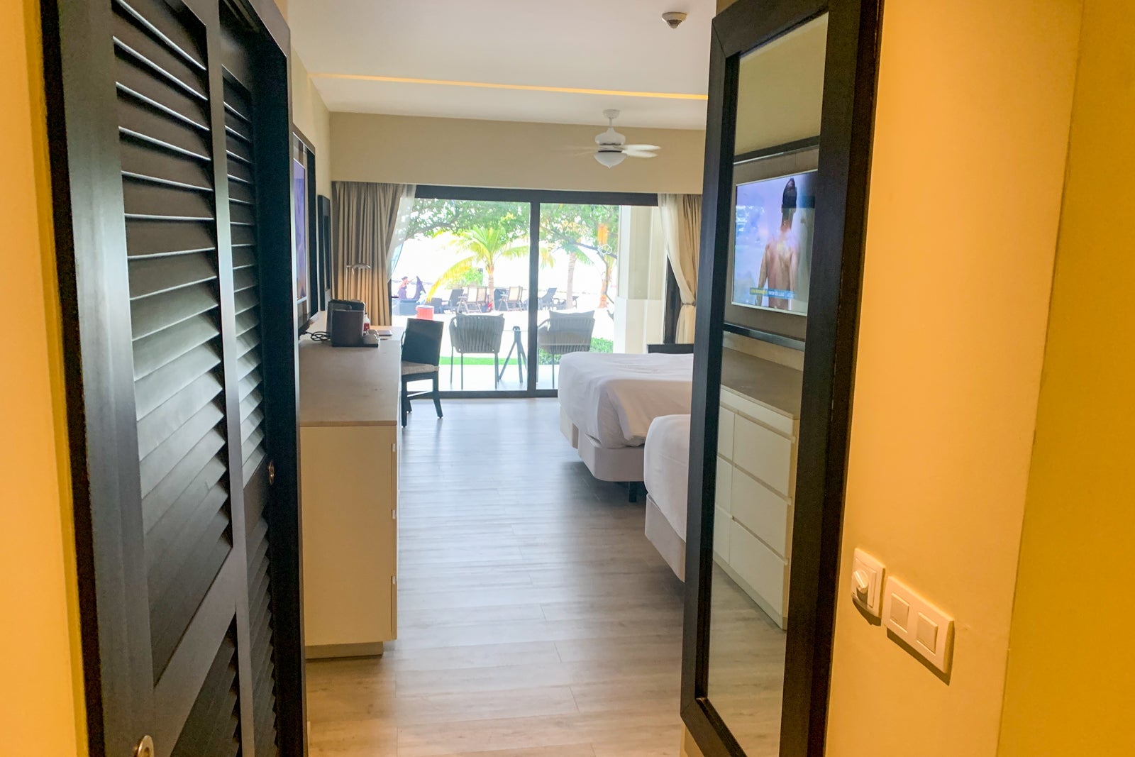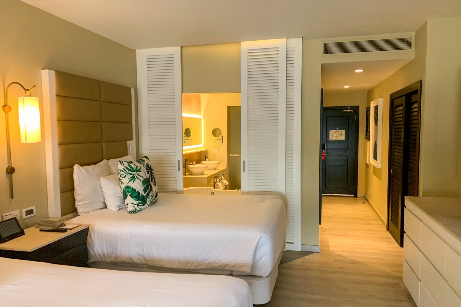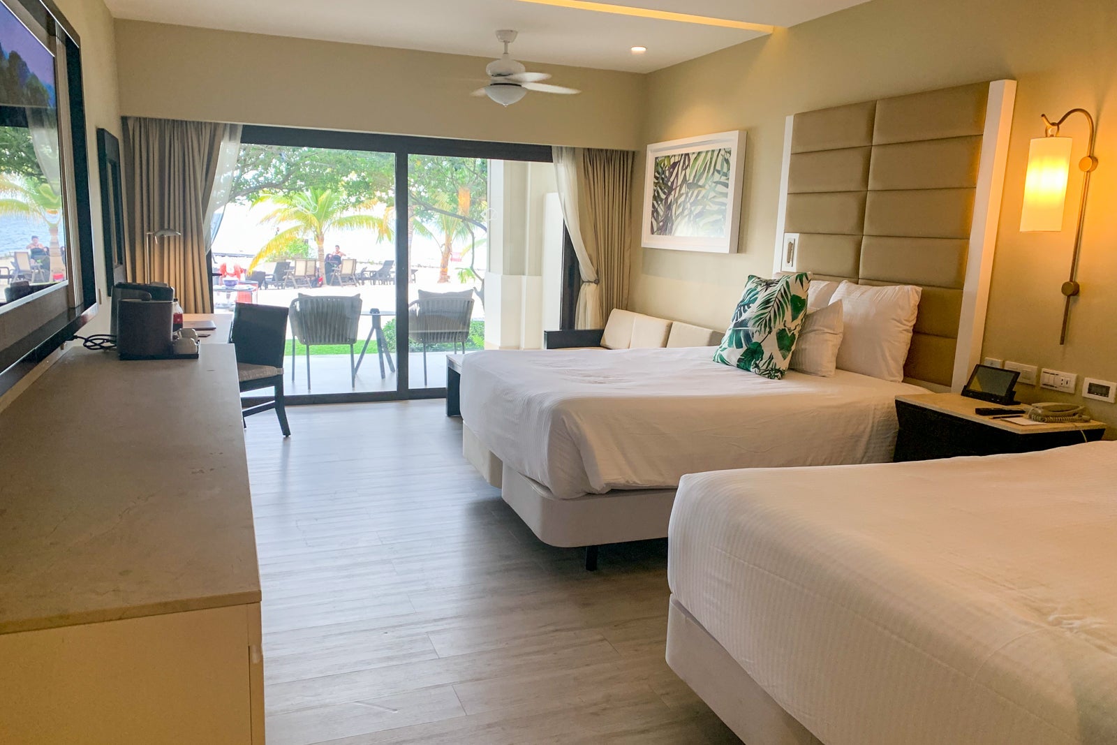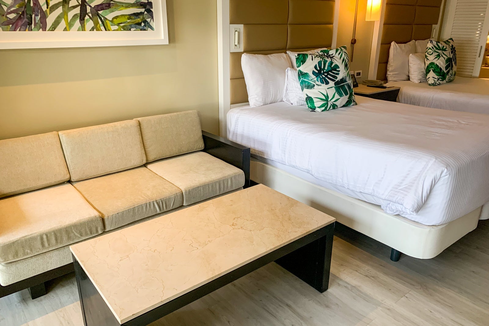 My ground-floor room had two beds with a view of the beach, a small living room area and a large bathroom with a double vanity. The room was a bit rough around the edges but otherwise nice enough.