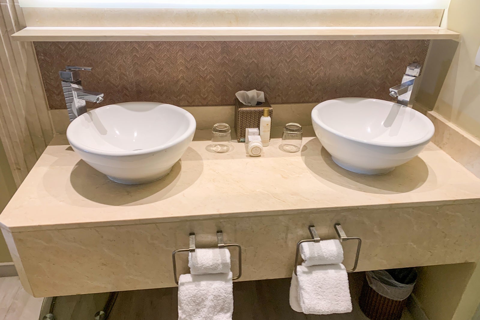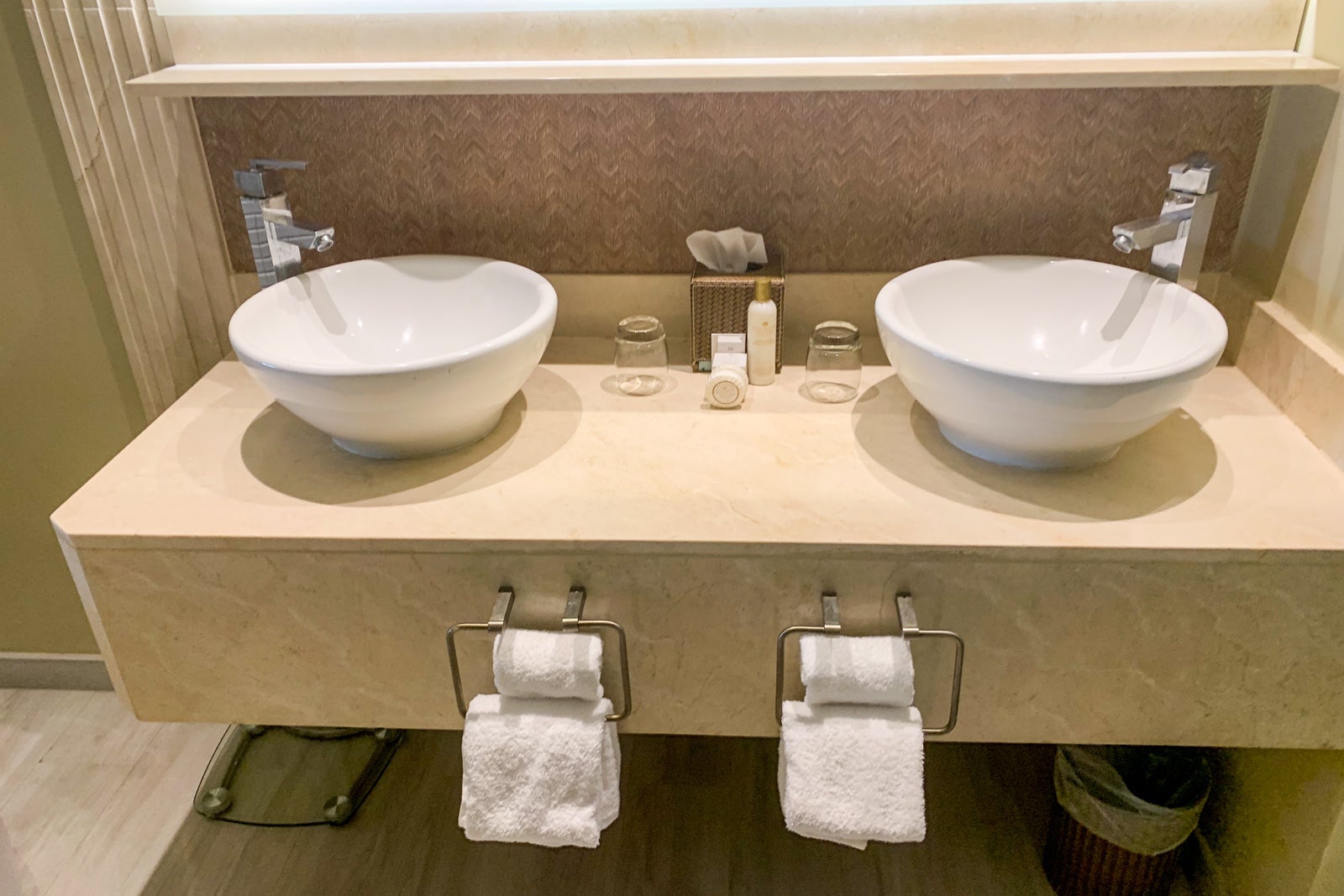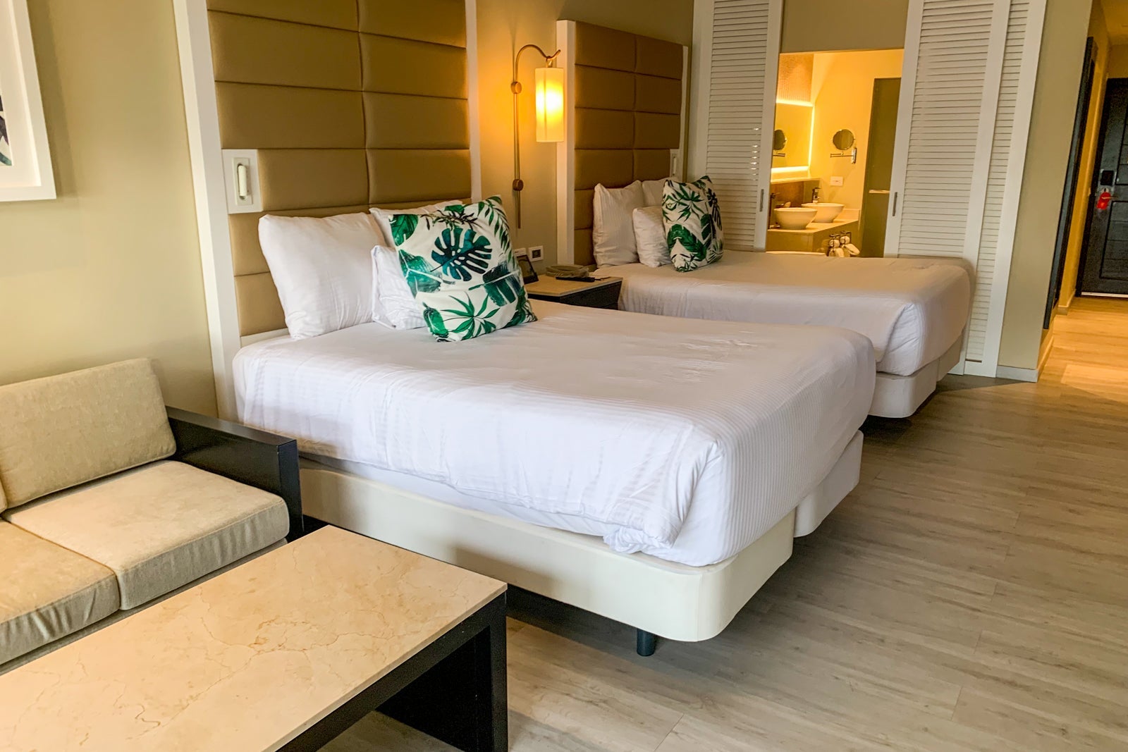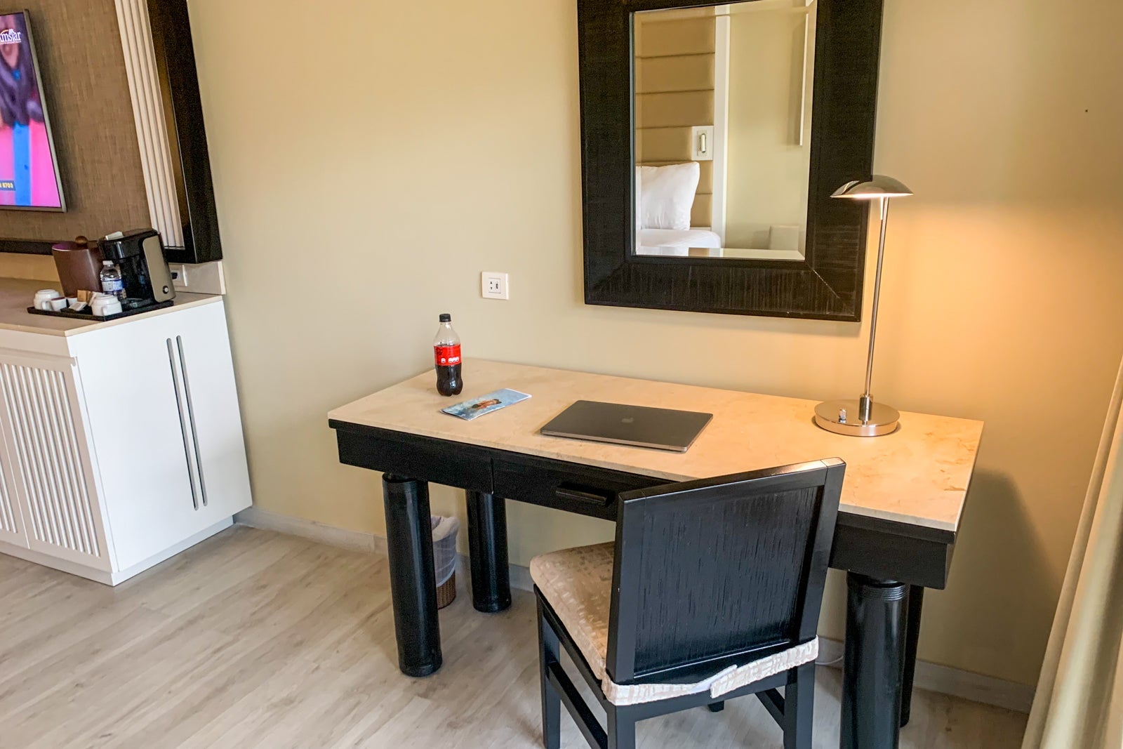 My ground-floor room had two beds with a view of the beach, a small living room area and a large bathroom with a double vanity. The room was a bit rough around the edges but otherwise nice enough.