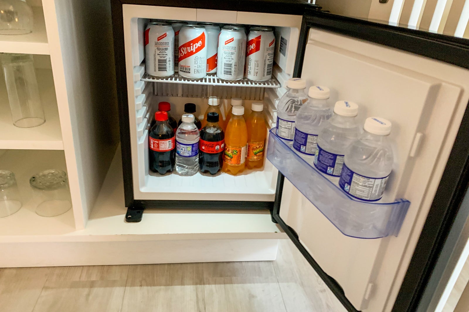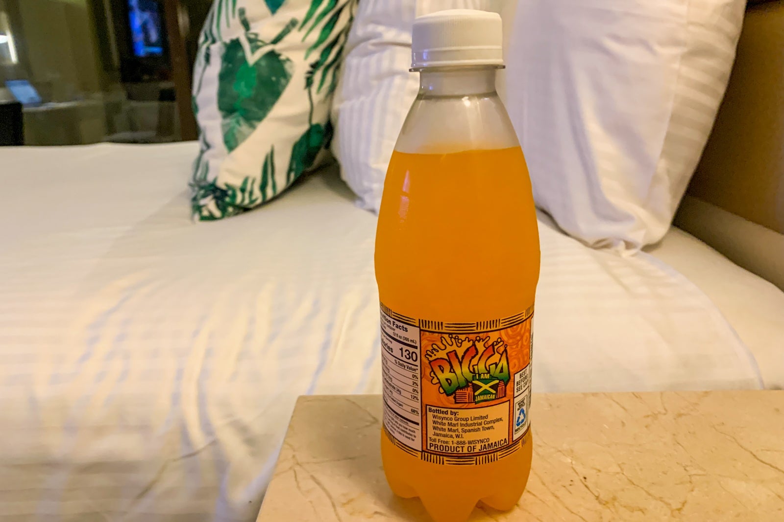 There was a small fridge with free beverages limited to water, Coke products, Red Stripe beers and Bigga orange sodas.