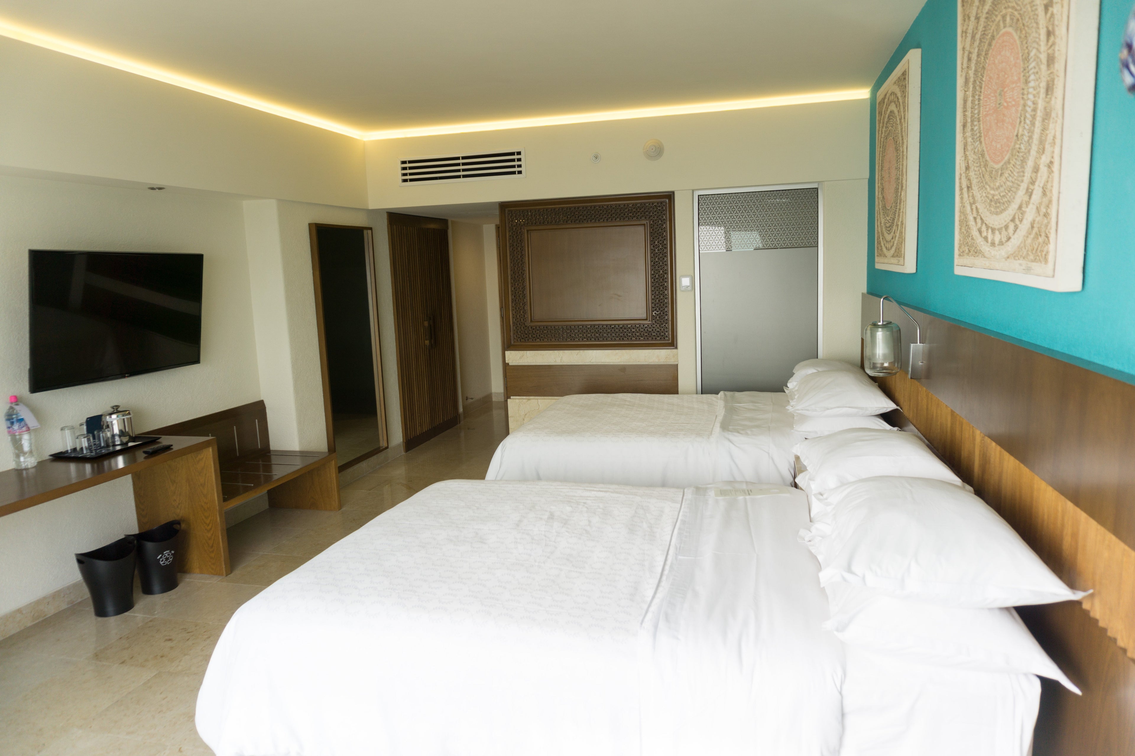 It was around 5:00pm when we arrived at the hotel, and our room was ready. The agent mentioned that breakfast and hors d'oeuvres would be served in the lounge. We had the choice of a welcome amenity of 500 SPG Points or chocolates. After check-in, we were invited to speak with the concierge for free margaritas. He tried a classic timeshare pitch, but when he realized we weren't interested, we ended up having a friendly chat about Cuba, which turned into another free (and strong) margarita. About 45 minutes later and in full vacation mode, we were on our way to an upgraded club-level room with two double beds.