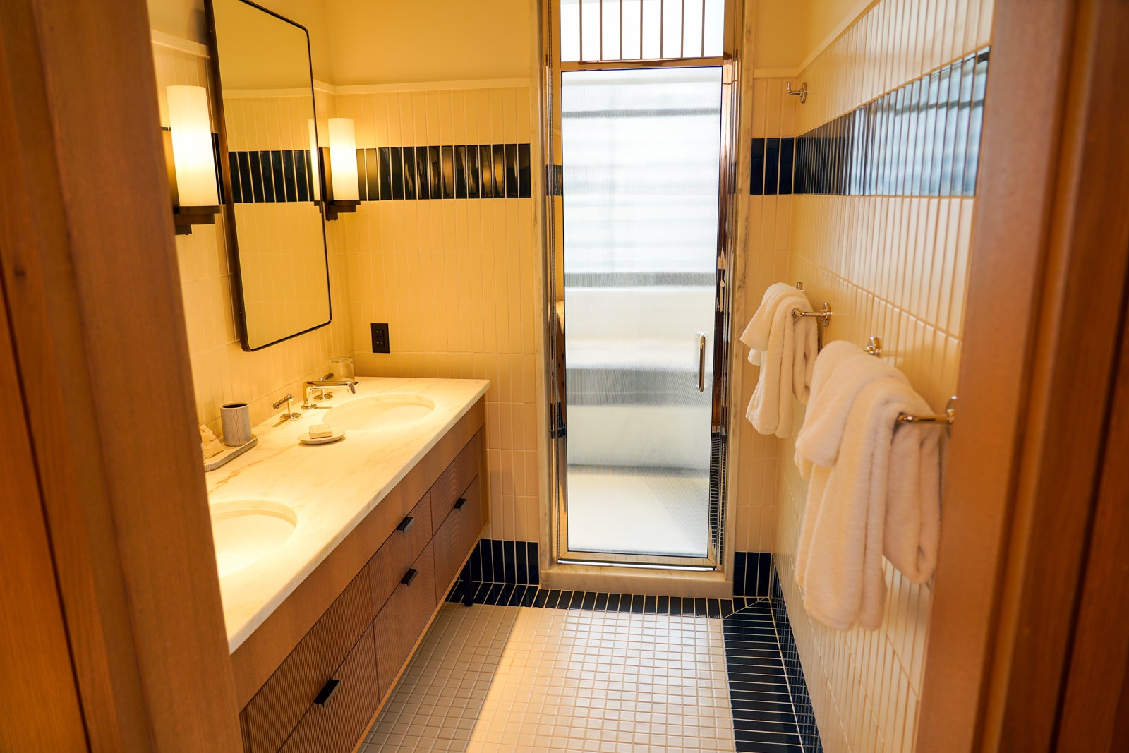The two-sink bathroom was fine, but beyond lay an inviting wet room and marble bath. The shower had both a handheld and rainfall shower head, and beyond was the integrated tub. Let me tell you something: I love to live life without borders, so I promptly made the shower-to-soak combo my first order of business.