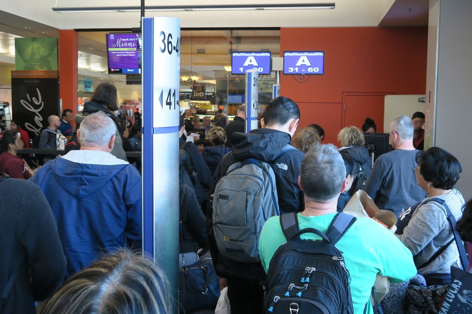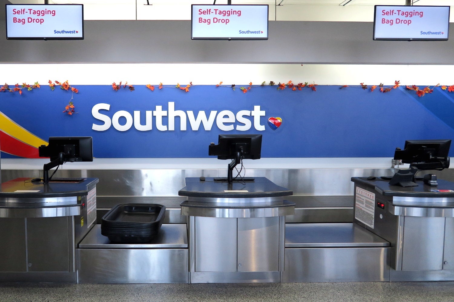 All three check-in areas were decorated with fall or Thanksgiving themes. The check-in areas were crowded when I arrived, but I easily found an open kiosk.