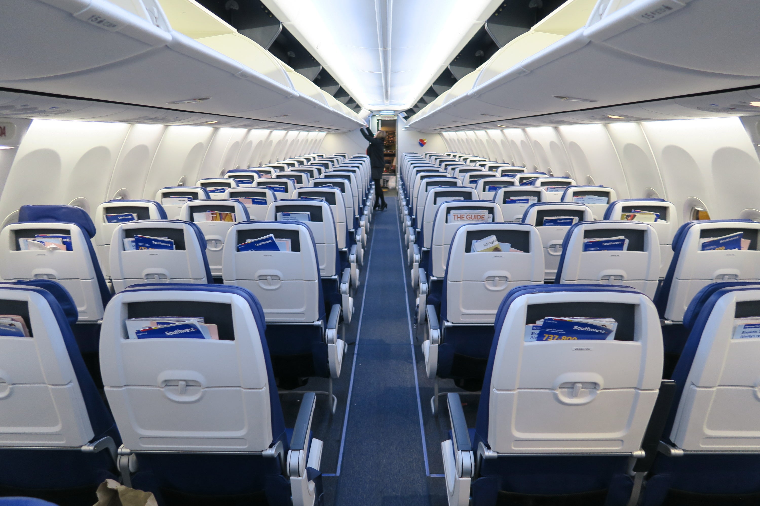 Southwest's 737-800 had 30 rows of 3-3 seating. There weren't any business- or first-class seats, so all passengers could claim any open seat when they boarded.