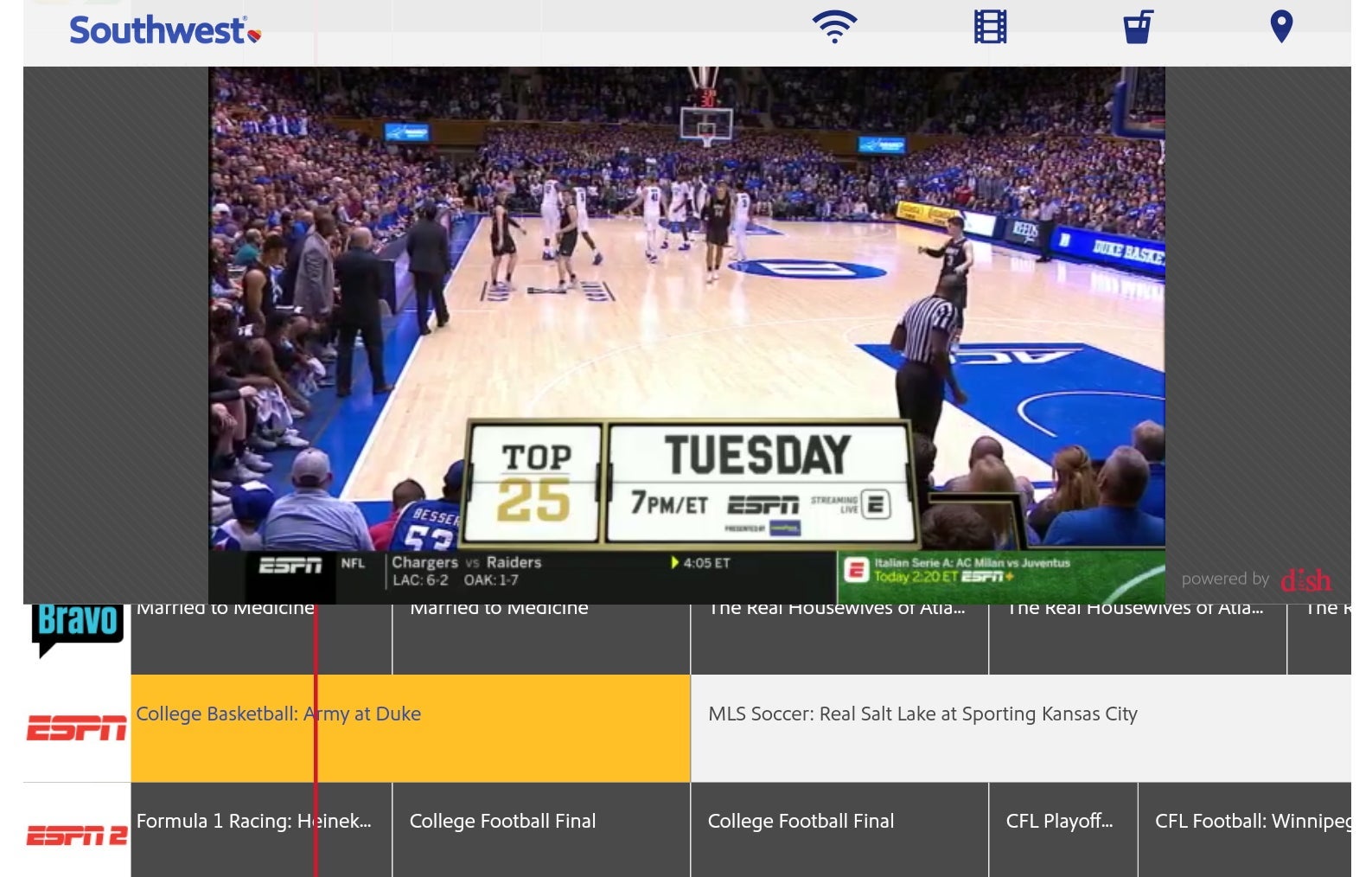 Once on this screen was some content available on any Wi-Fi-enabled device and other content only available with select browsers (like the Southwest app or the AirPlayer app). I was able to watch all types of content on my laptop without installing any special software, though.
