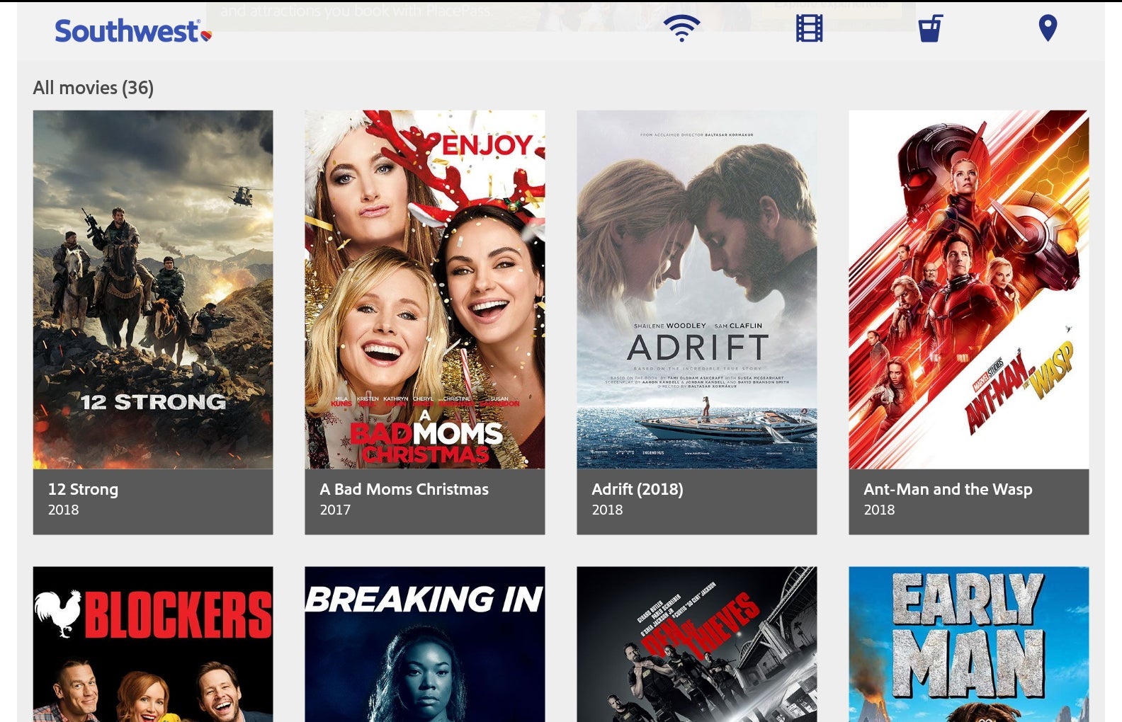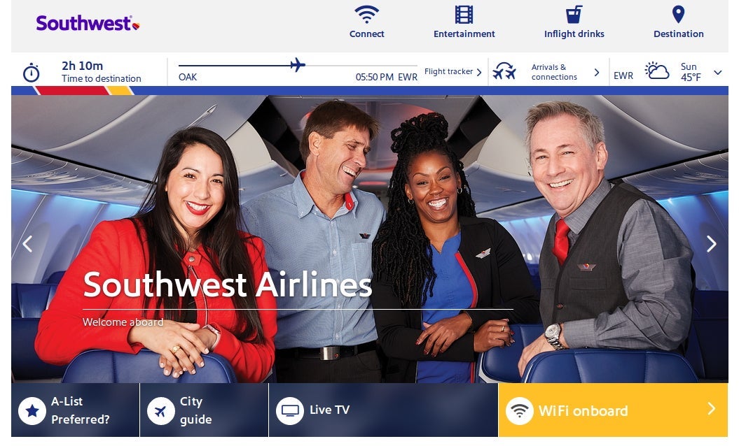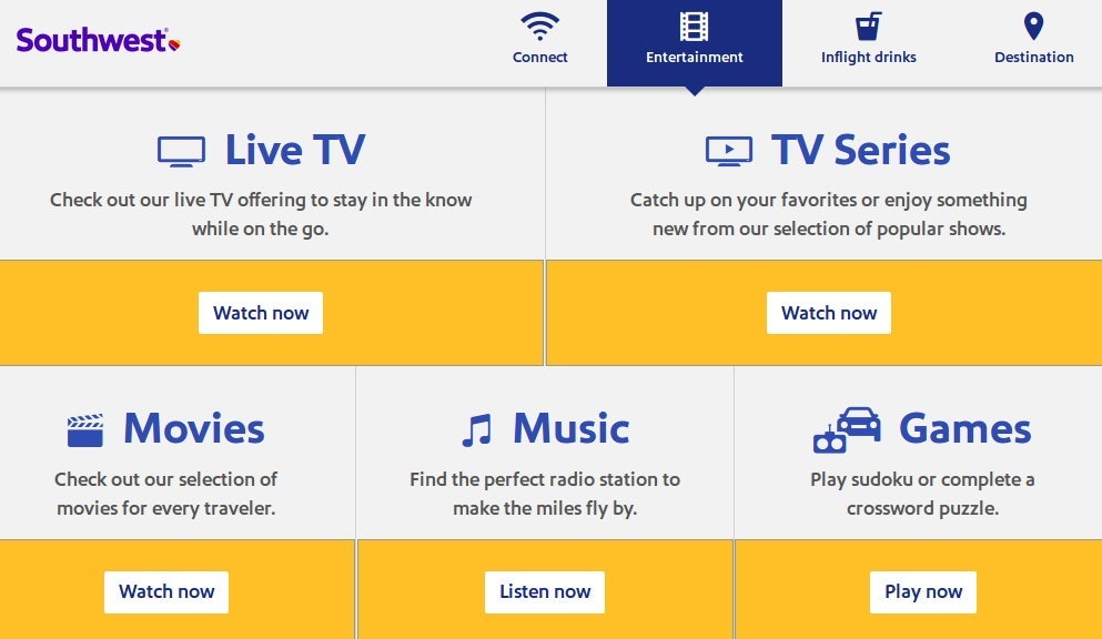 An entertainment library was available for free on your own device even if you didn't purchase Wi-Fi. To reach the entertainment, connect to the onboard Wi-Fi network and go to southwestwifi.com.