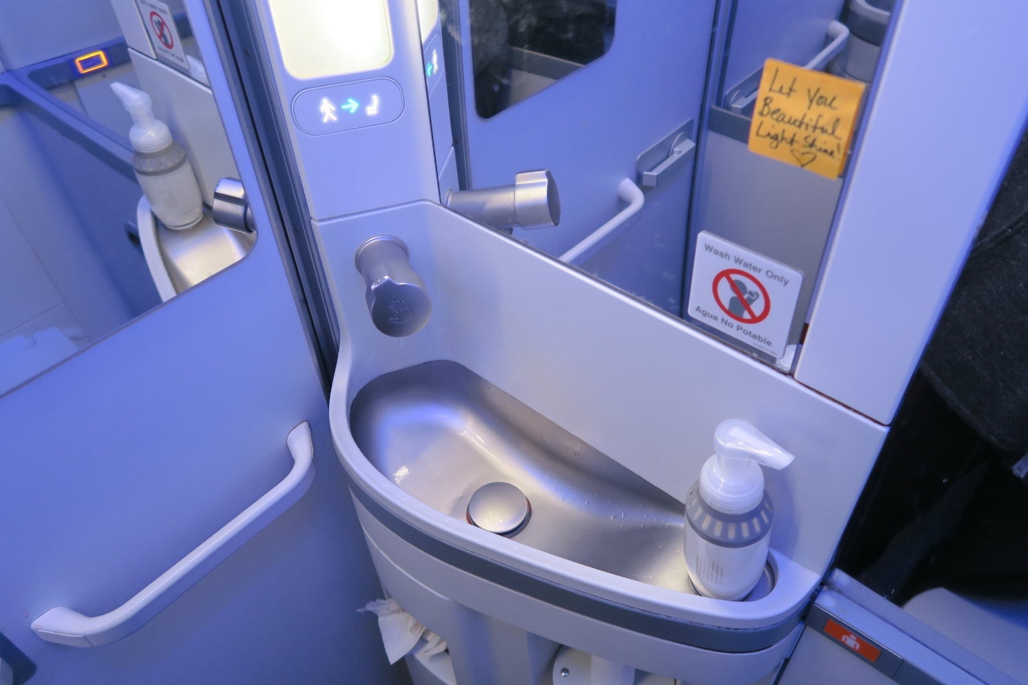 There were three lavatories: one at the front of the aircraft and two at the back. I only used one of the lavatories at the back of the aircraft and found it to be surprisingly small. By the end of the flight, the lavatory wasn't exactly clean.