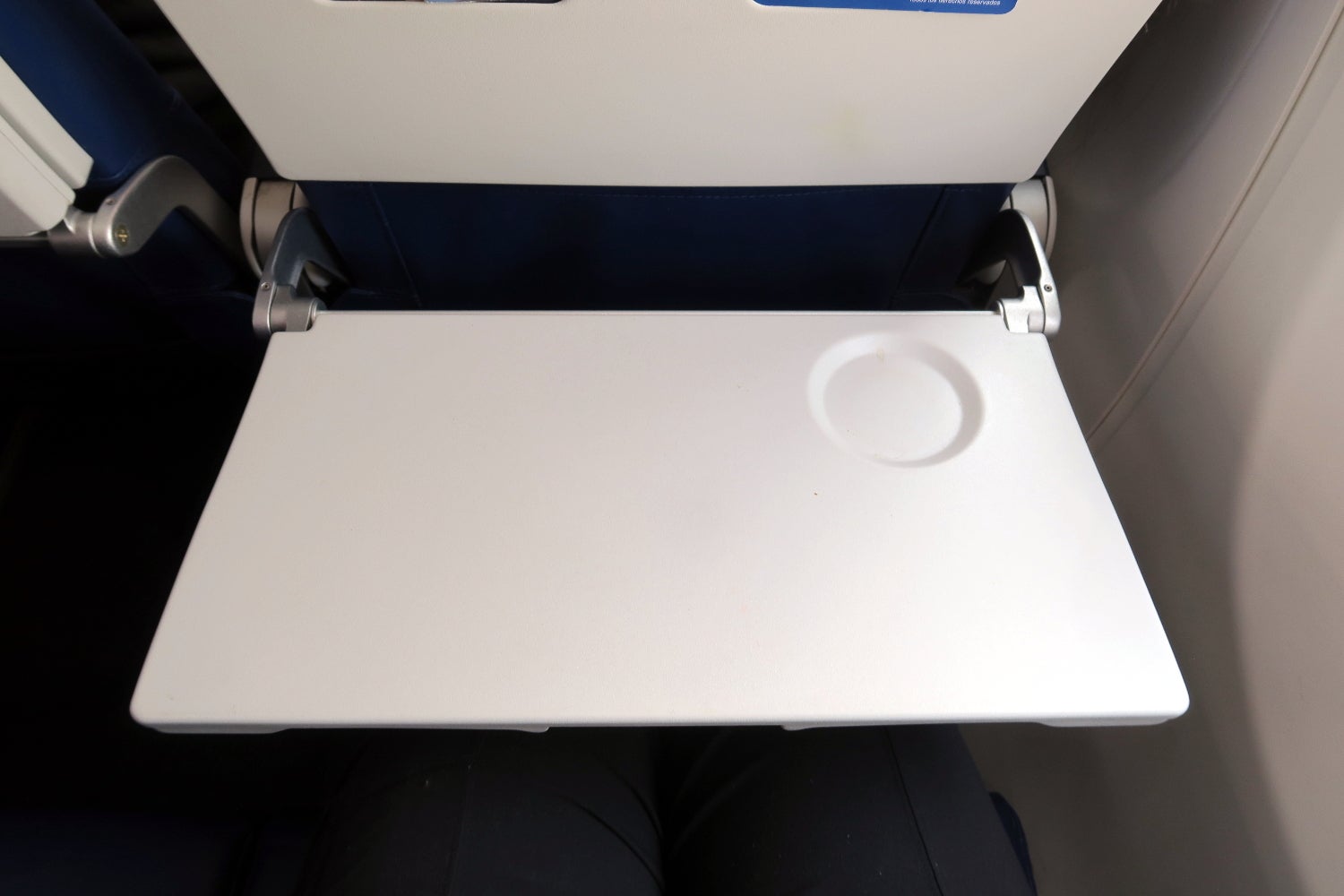 Below the tray table was an empty mesh seatback pocket. This pocket could easily hold cameras, cellphones, tablets and books.