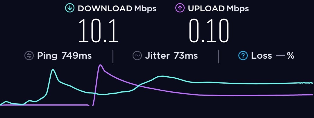 The Wi-Fi quality was decent with 10.1 Mbps download. The upload measured as 0.1 Mbps, but I believe the upload speed was better than it tested.