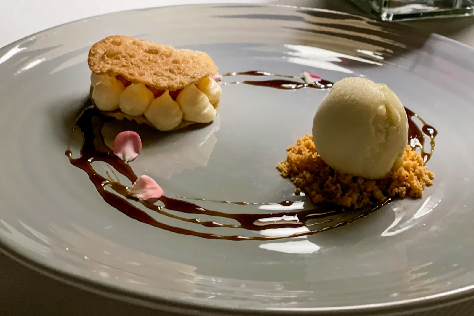 Each course presented flavor pairings in unexpected ways, and for most courses (save the sun-dried crickets), it left me wanting more. I surprised myself by loving the kampachi and orange tostada. I don't typically enjoy raw fish, but the combination of textures and fresh flavors — along with flower petals as accents — won me over.