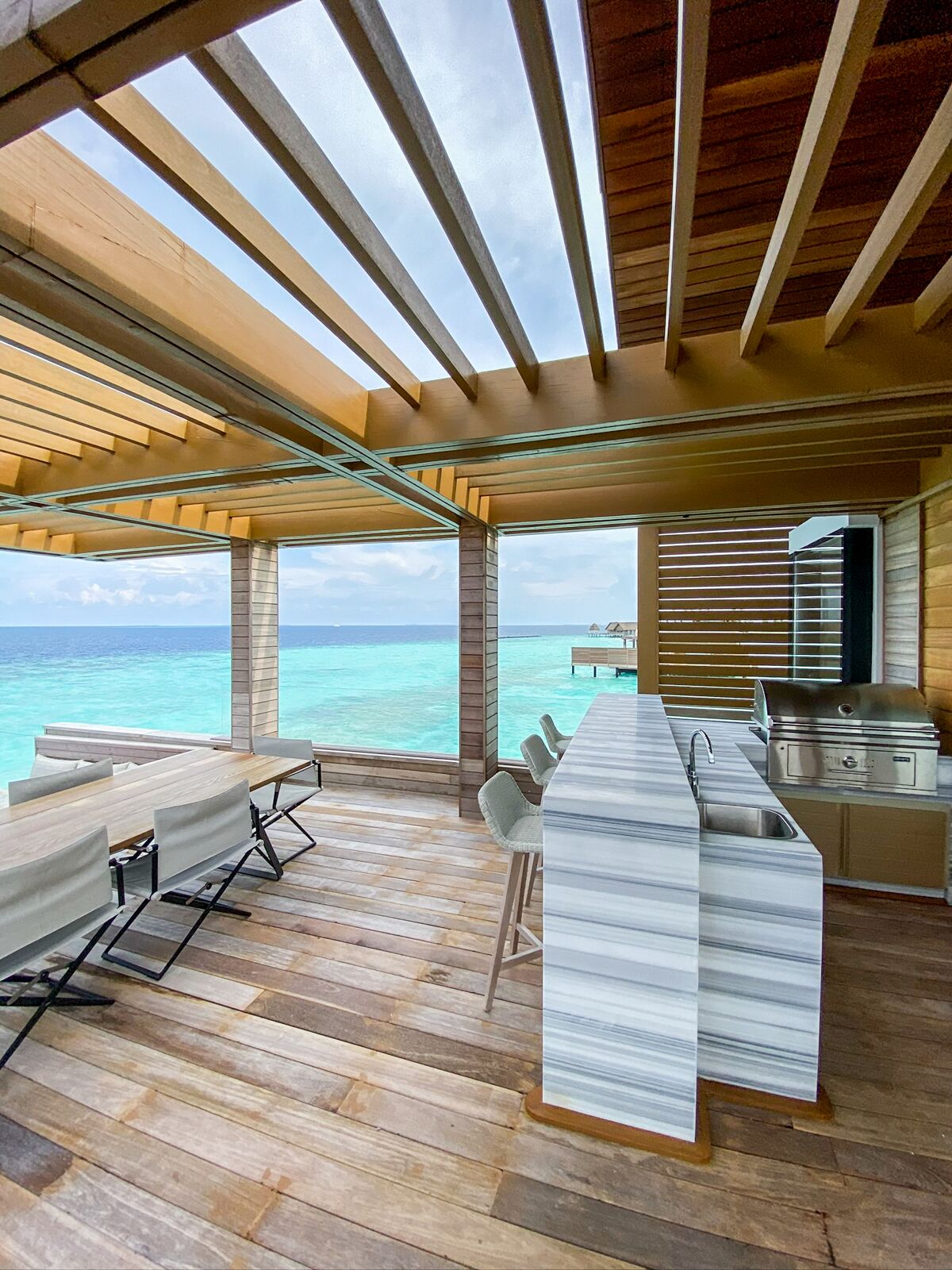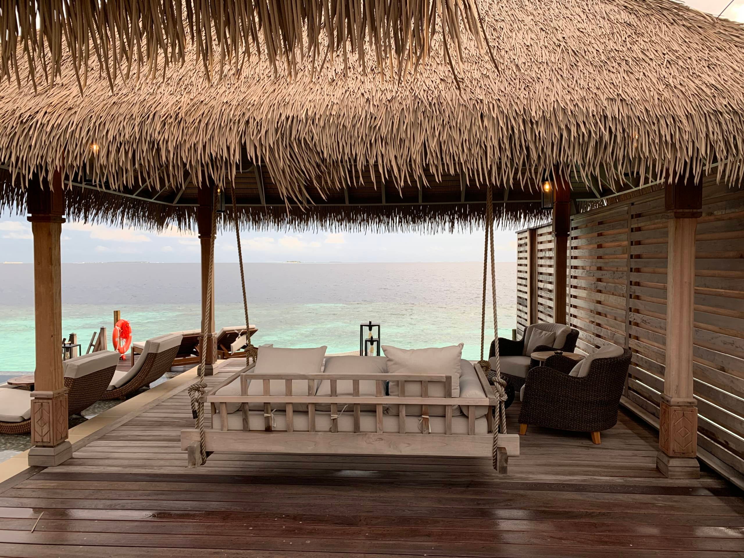 "My reef villa was stunning! The overwater terrace had a private infinity pool, as well as an overwater hammock, daybed and an outdoor shower. Unfortunately, my stay was only one night long and I spent most of the time in Brian's epic Stella Maris Villa filming, which didn't leave me much time to enjoy the reef villa. But it felt very private and I loved the daybed/outdoor swing that overlooked the sea.
