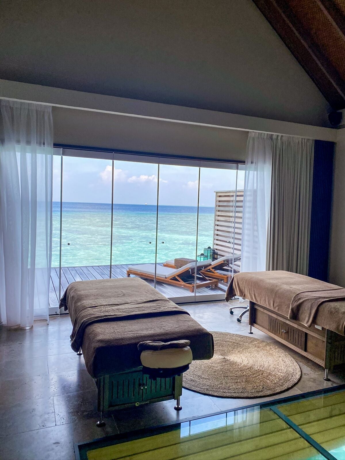 The Maldives is all about relaxing. In fact, I got three massages while I was there and they were all fantastic. They definitely weren't cheap, but I knew that in advance and they were well worth the cost. The spa, which has 10 treatment pavilions is completely overwater, which meant I could watch the fish swim during my massage through glass-bottomed floor sections.