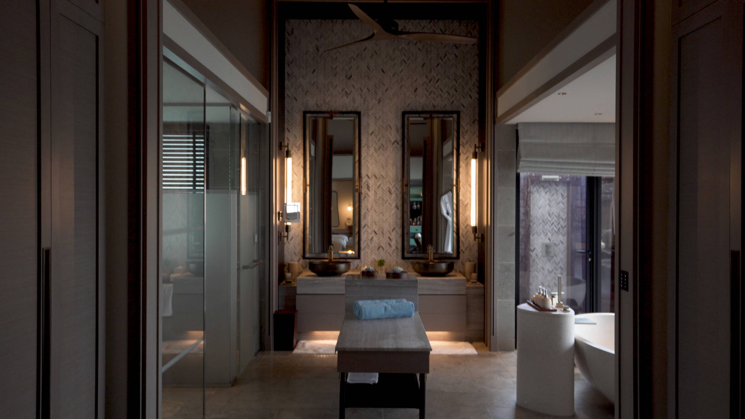 Upon entering, I realized that this was probably the most beautiful villa I'd ever seen -- a modern masterpiece, yet still comfortable and cozy. The sleek design scheme, heavy in marble and glass, inspired comfort and relaxation. I was blown away by the shocking amount of marble in the villa -- this space definitely wasn't going anywhere in a storm. Everything looked shiny and new, and it was clear that I was the very first guest to stay in the villa.