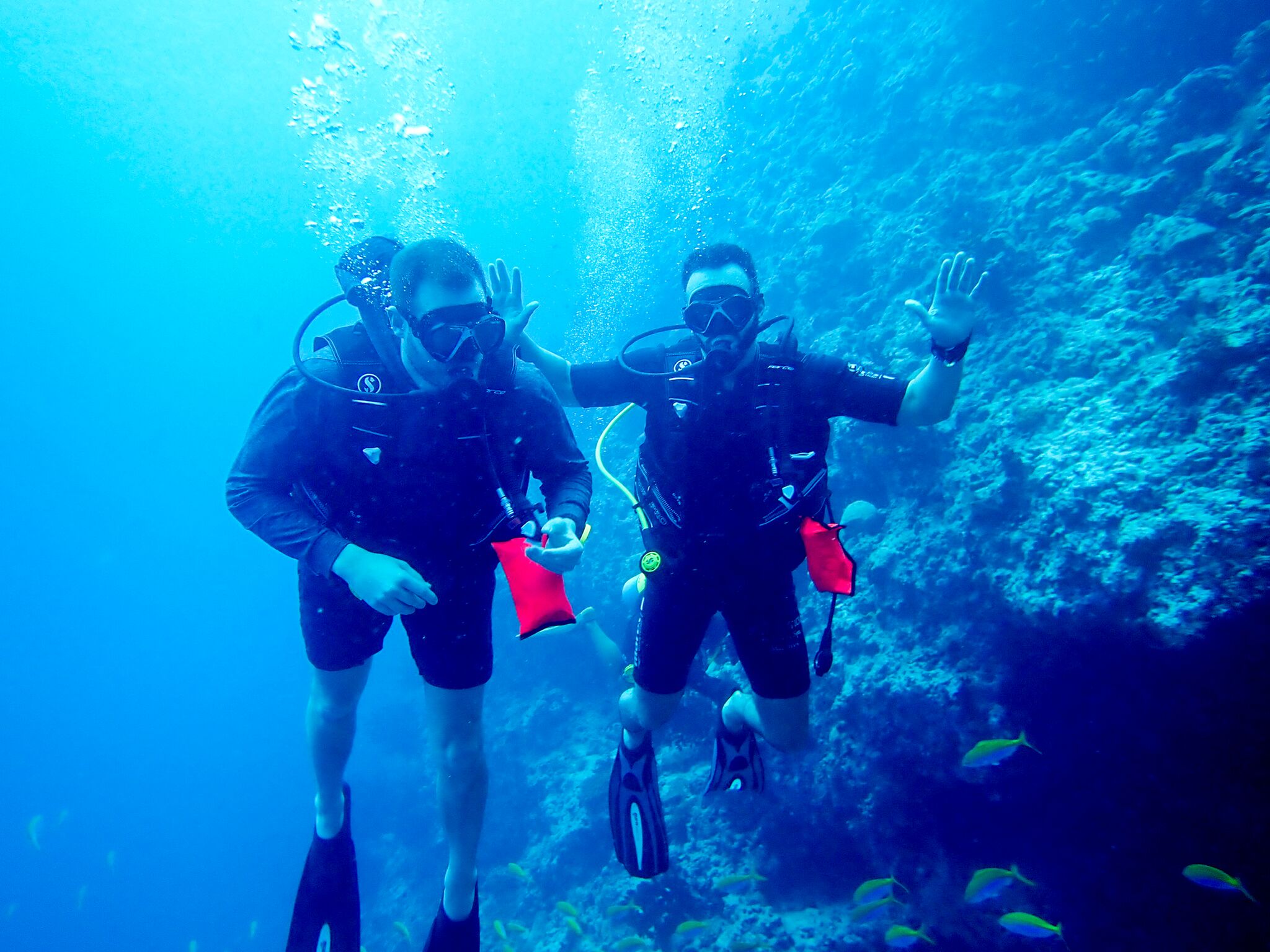 The house reef was just OK, unfortunately. Any time an overwater resort is built, the reef is drilled. The house reef here was damaged from the drilling and will take some time to recover. It wasn't nearly as nice as the reef at Baros. I did a refresher dive at the house reef and didn't see much marine life. But just a 15-minute boat ride away, there was a small chain of islands where the diving was fantastic. I saw a manta one day even though they weren't in season, as well as many fish, eels, turtles and even a silvertip shark (my favorite kind of shark).