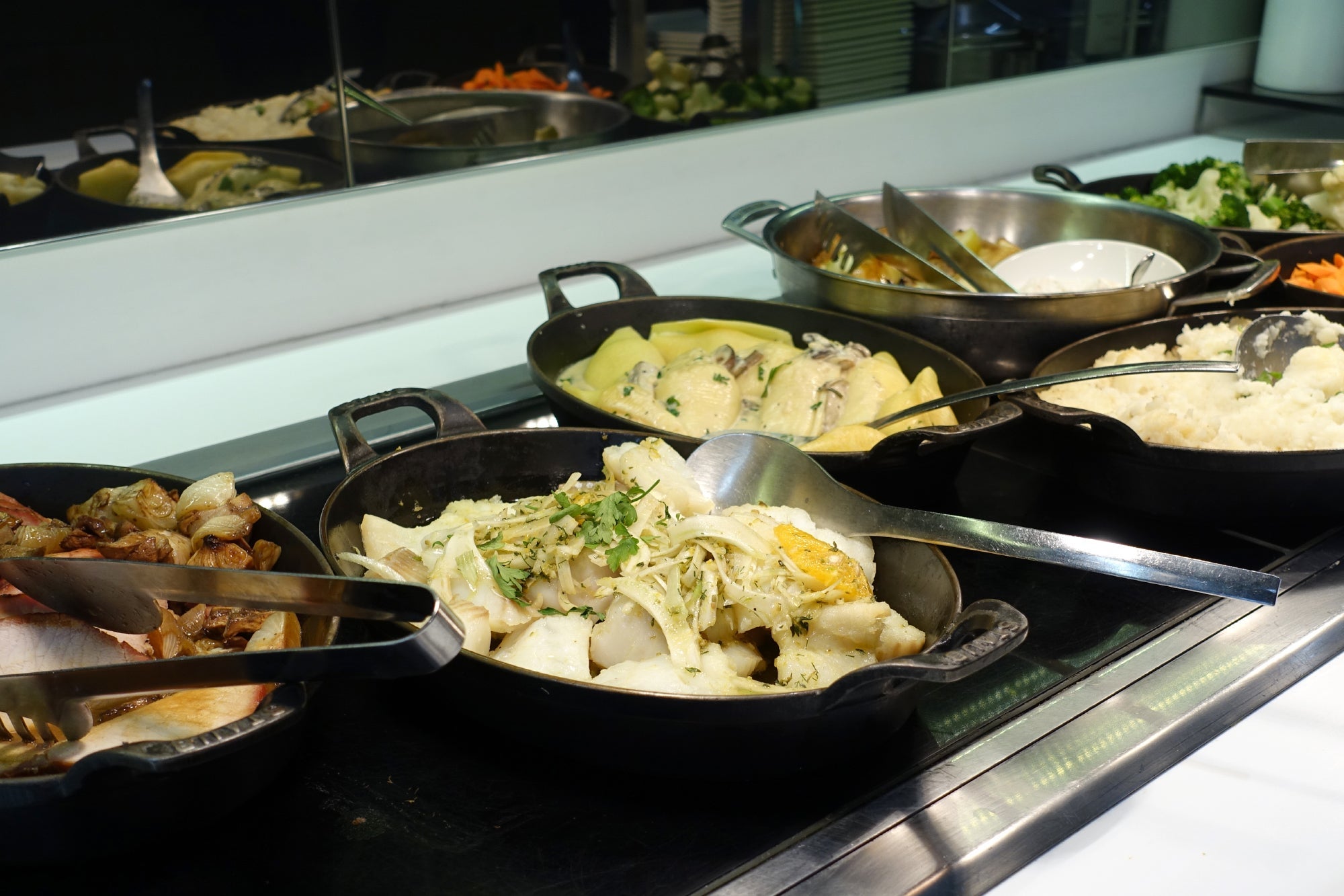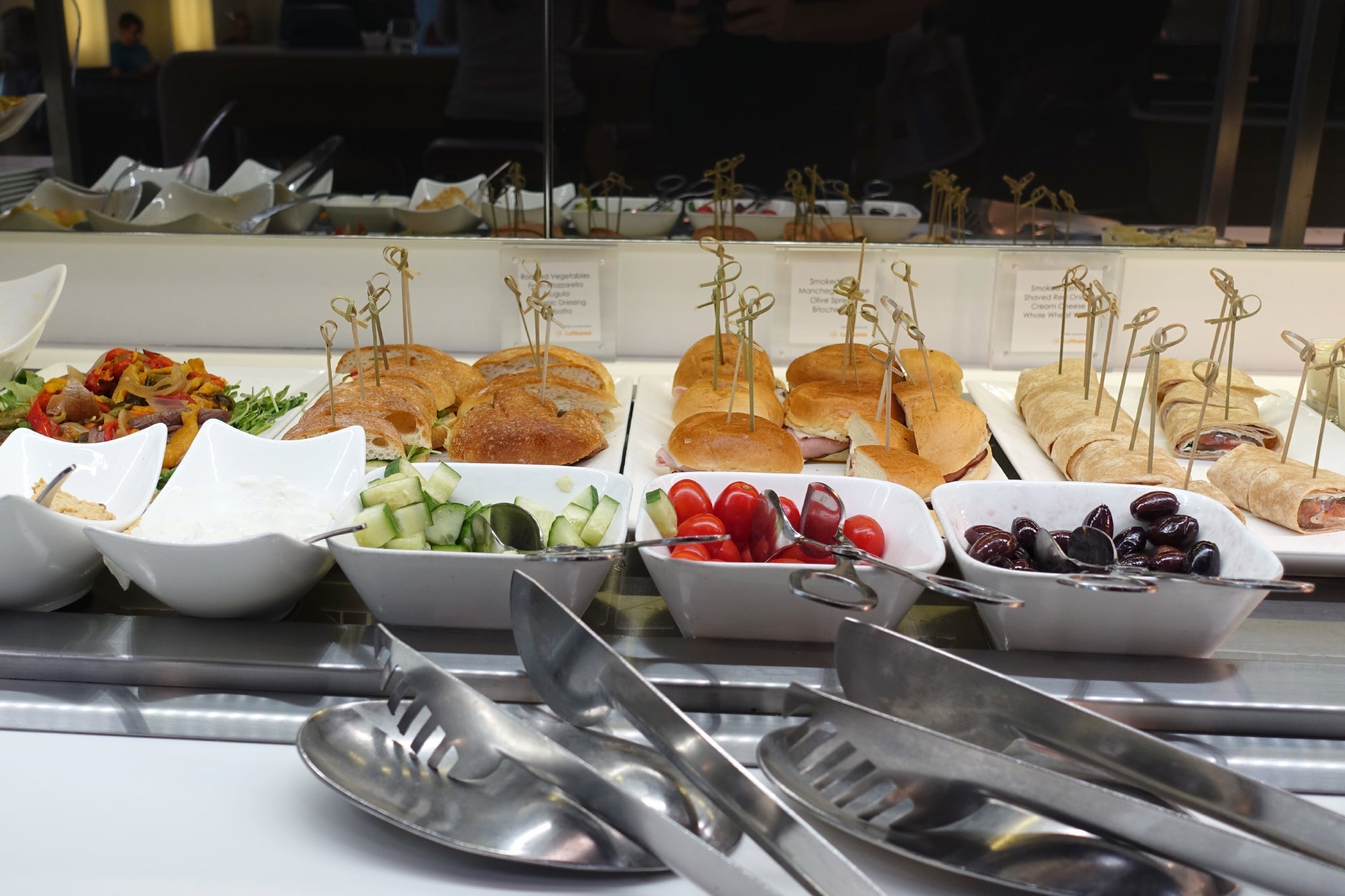 There was a mix of hot entrees at the buffet, though there was no a la carte option like at the Polaris Lounge in Terminal C.