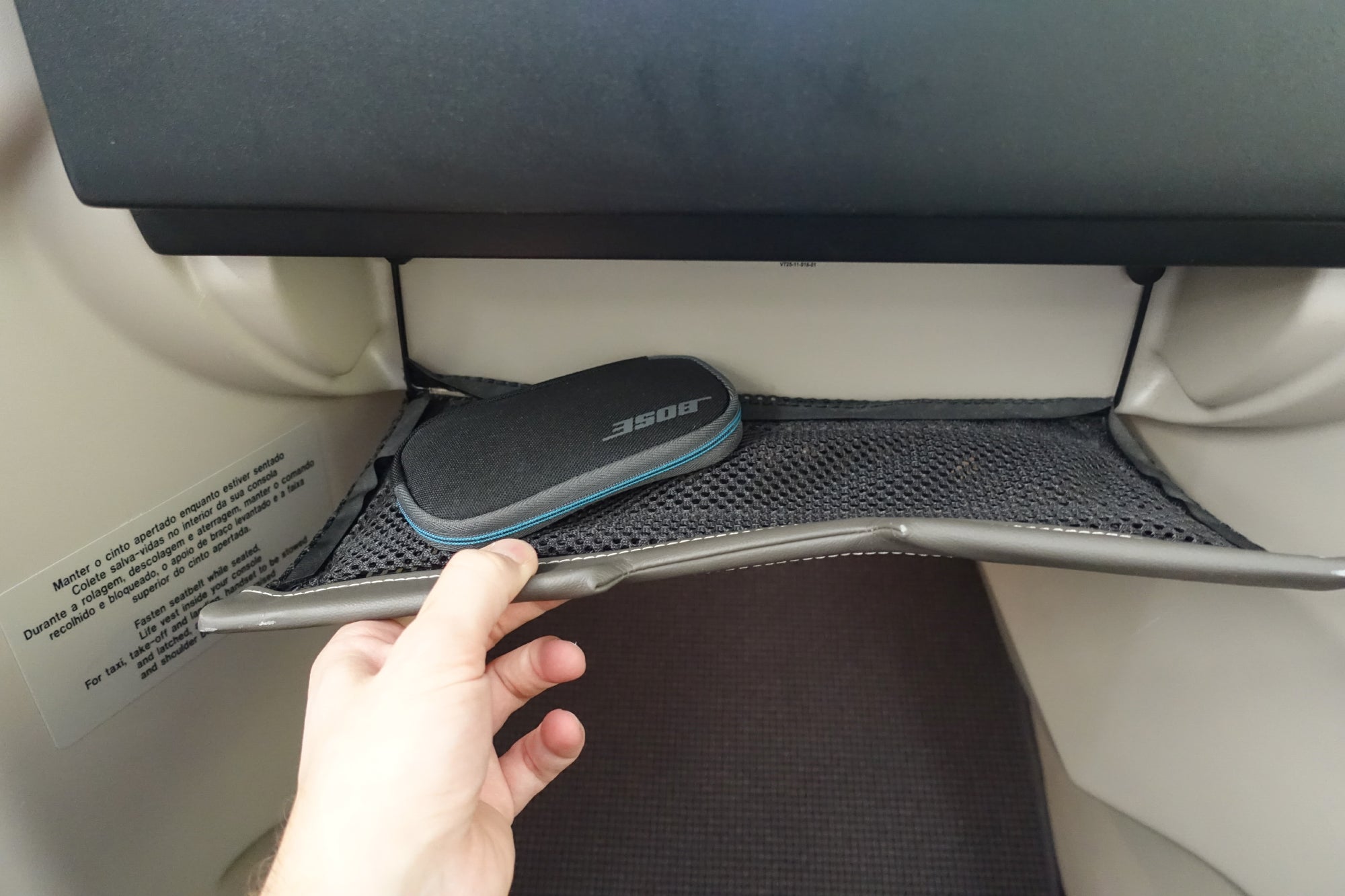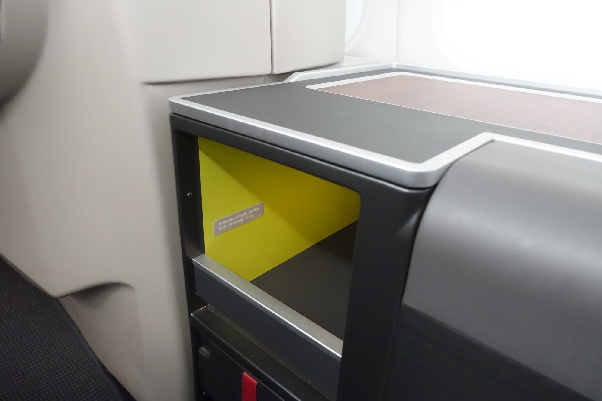 And a small drop-down pocket for loose items just below the inflight entertainment system.