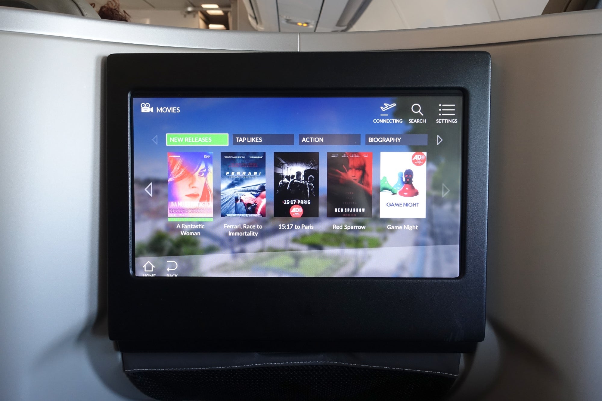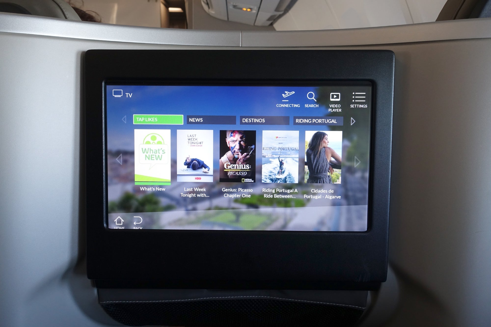TAP had a high-definition on-demand entertainment system at each seat, with movies, TV shows, music, games and kids' programming.