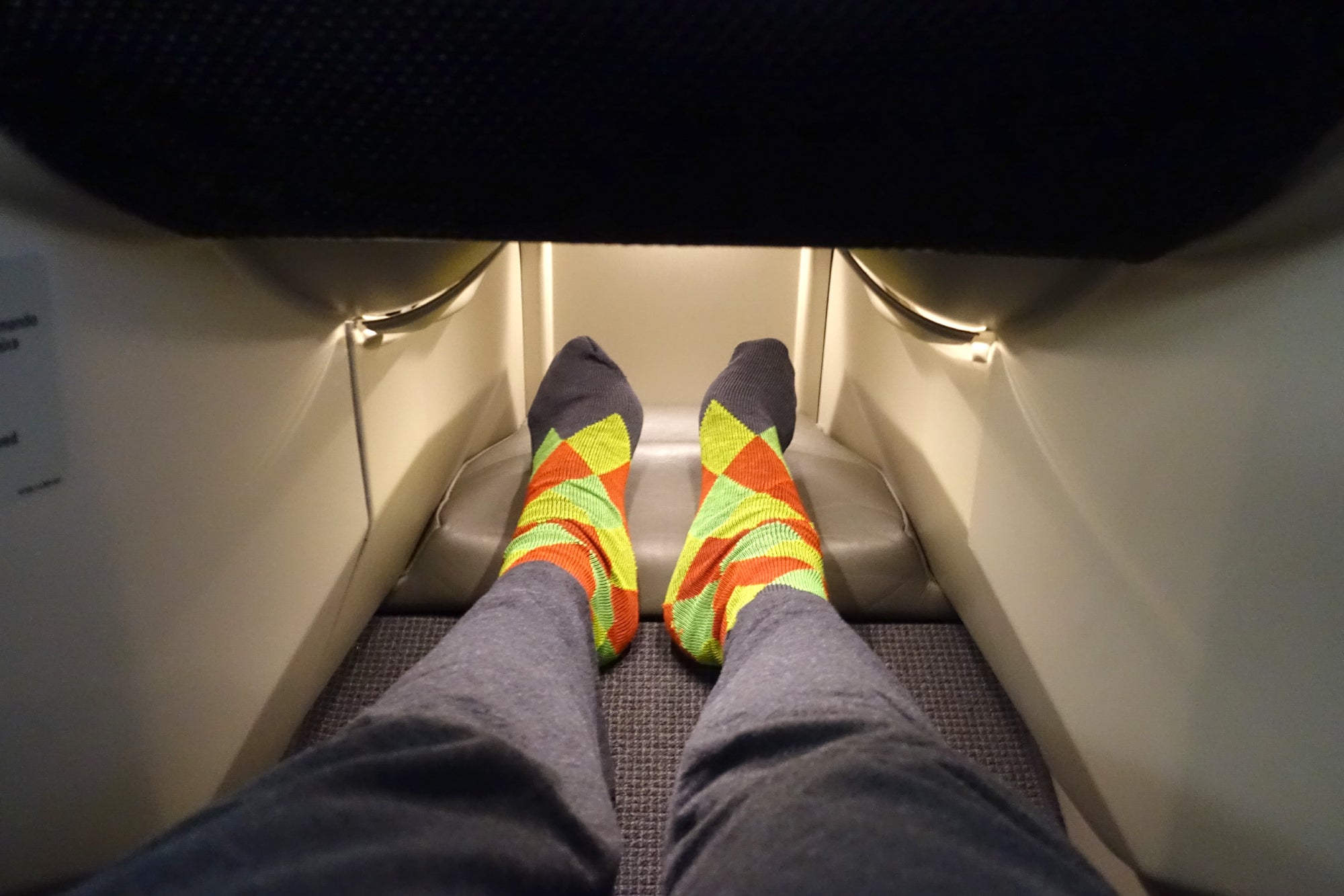 I also had a decent amount of space for my feet, though the footwell was a bit more compact than what I'd have gotten elsewhere in the cabin, since "throne" passengers were effectively tucking their feet under the center console in front.
