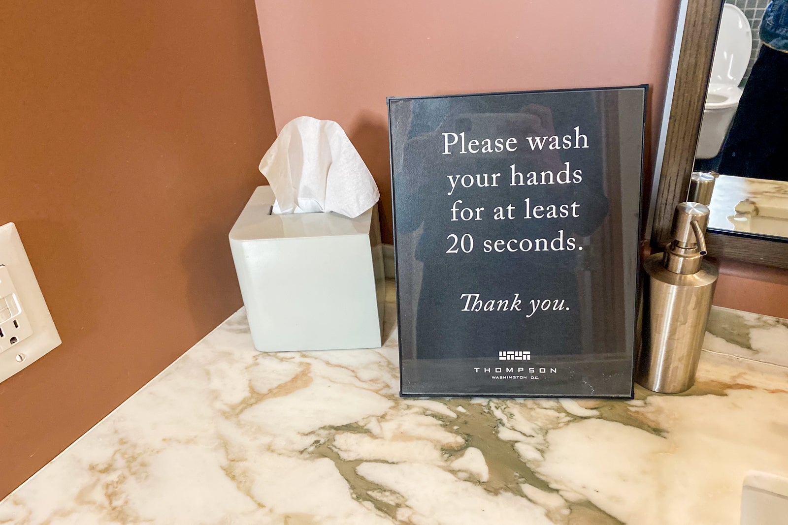 This commitment to safety was well documented throughout the hotel, from the lobby to the hallways to the elevator to the room itself.