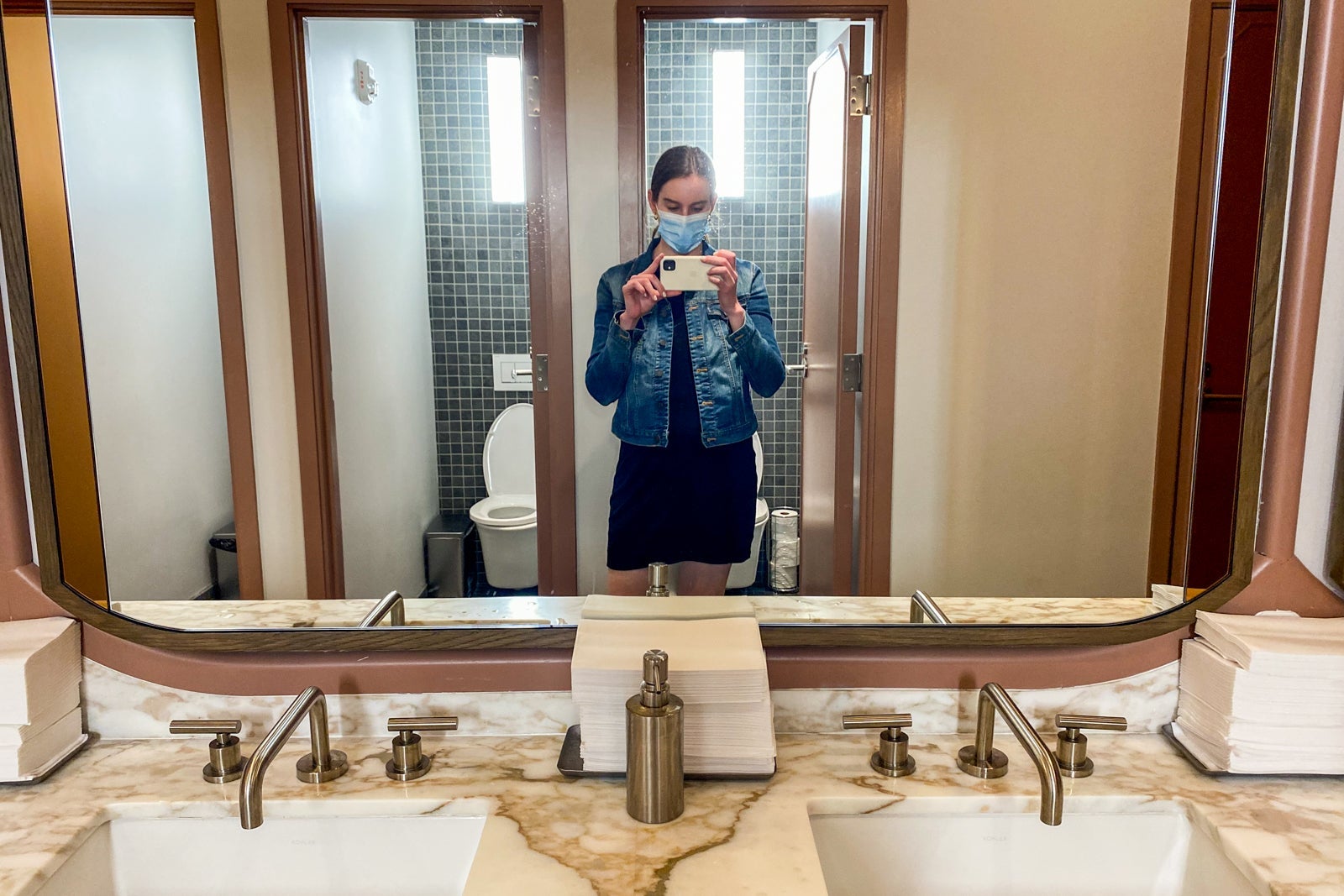 Face coverings were required in all public areas, including bathrooms, and the elevators were specific to the floor of each guest, meaning you entered your destination and then were directed to one of the three elevators based on that.
