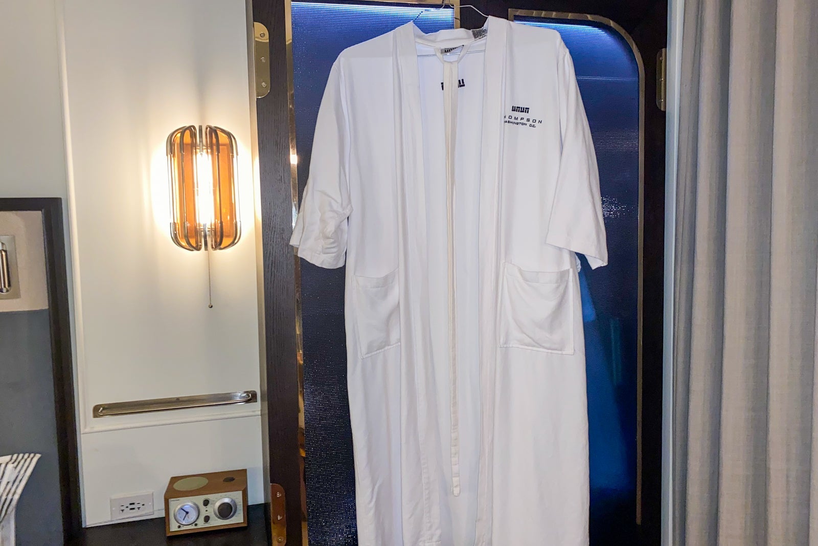 A robe was provided upon request, but it was dirty and therefore was uninviting.