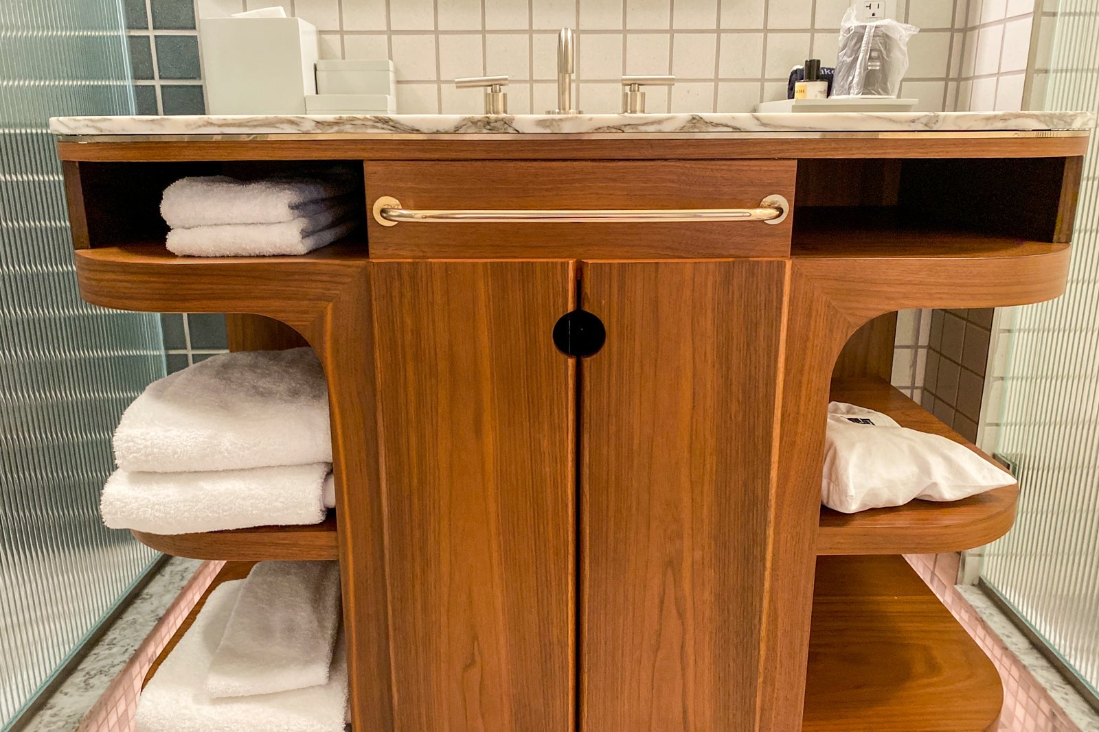 The bathroom, like much of the hotel, was sleek in design and minimalist in nature, excluding the six towels provided for our one-night stay. I definitely appreciated this as I have been known to go through towels quickly thanks to a sweating condition, which leads me to my next point.