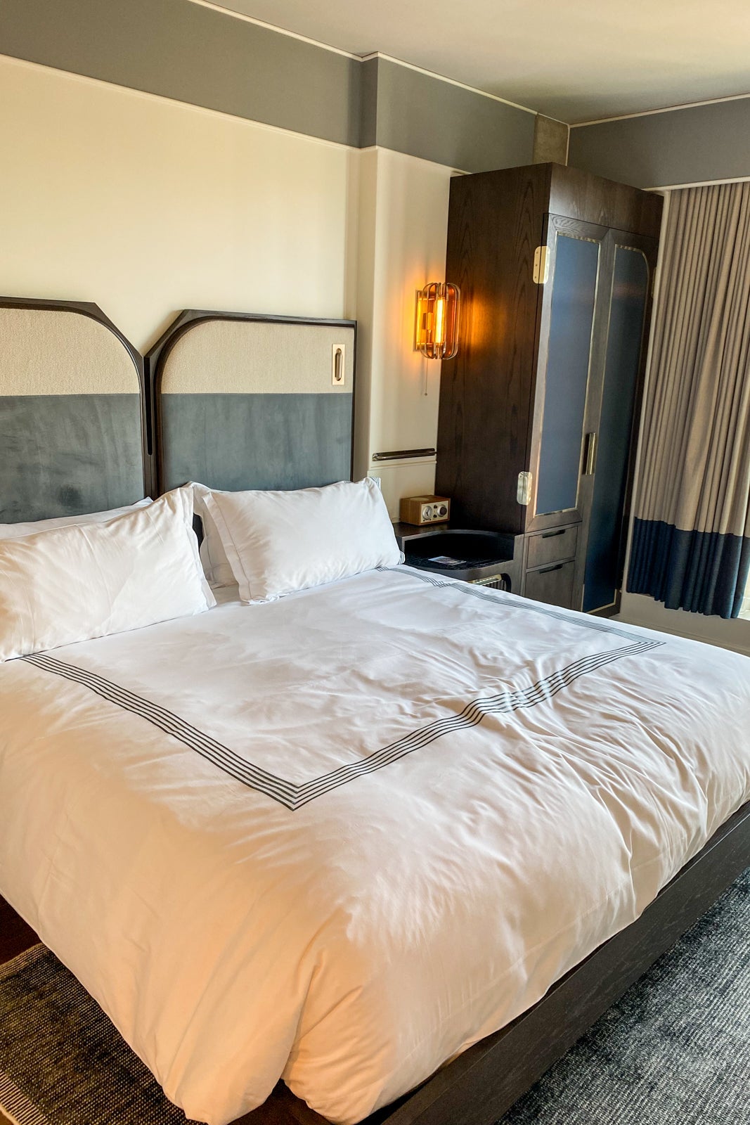 The king bed was very comfortable and a welcome upgrade from my queen, although there was no top sheet. I know there's an ongoing debate about the necessity of top sheets, not unlike headboards, but I am personally team top sheet.