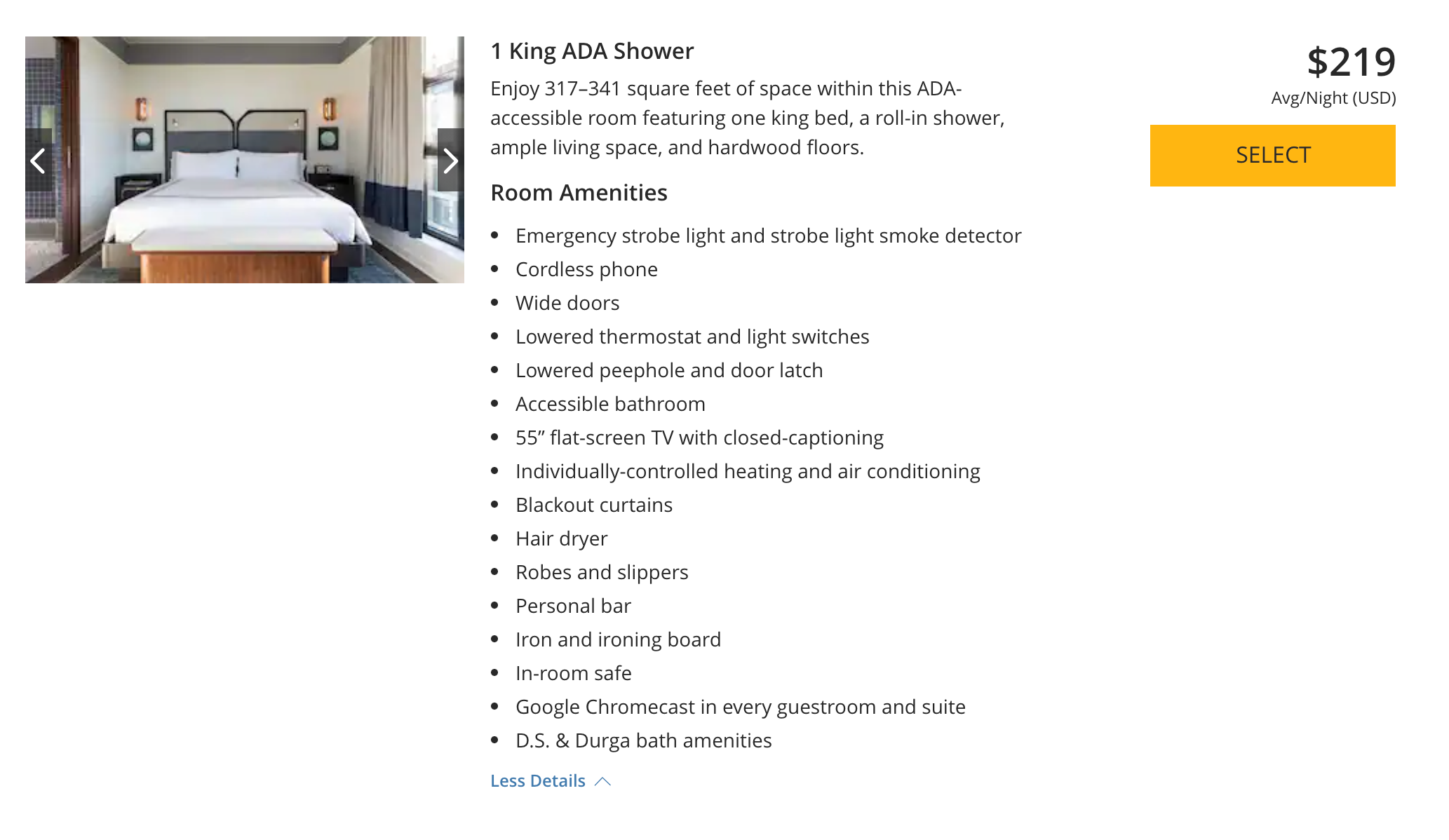 Accessible rooms at the Thompson Washington D.C. come equipped with the below features: