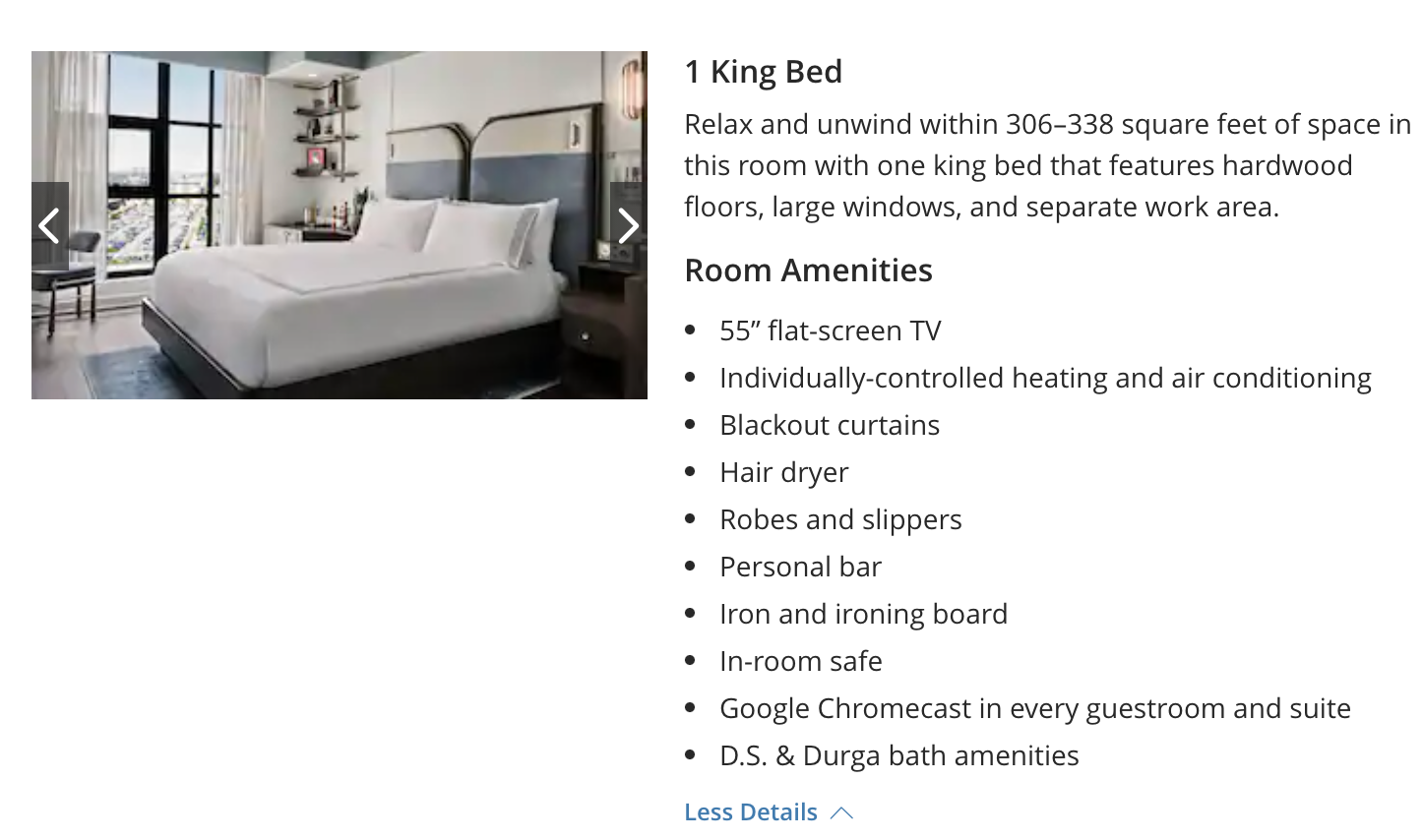 Thompson considers their king room "large" with its 306-338 square feet of space, "large windows" and spacious bathroom.