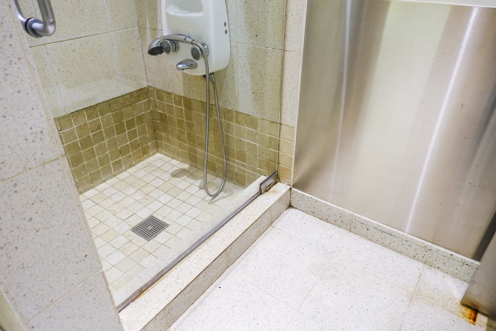 If you wanted to refresh before your flight, you could use one of the few showers in the lounge. I took a peek, but what I found was dim, dank and old — not a place I'd want to freshen up. There even appeared to be rust on the floor.