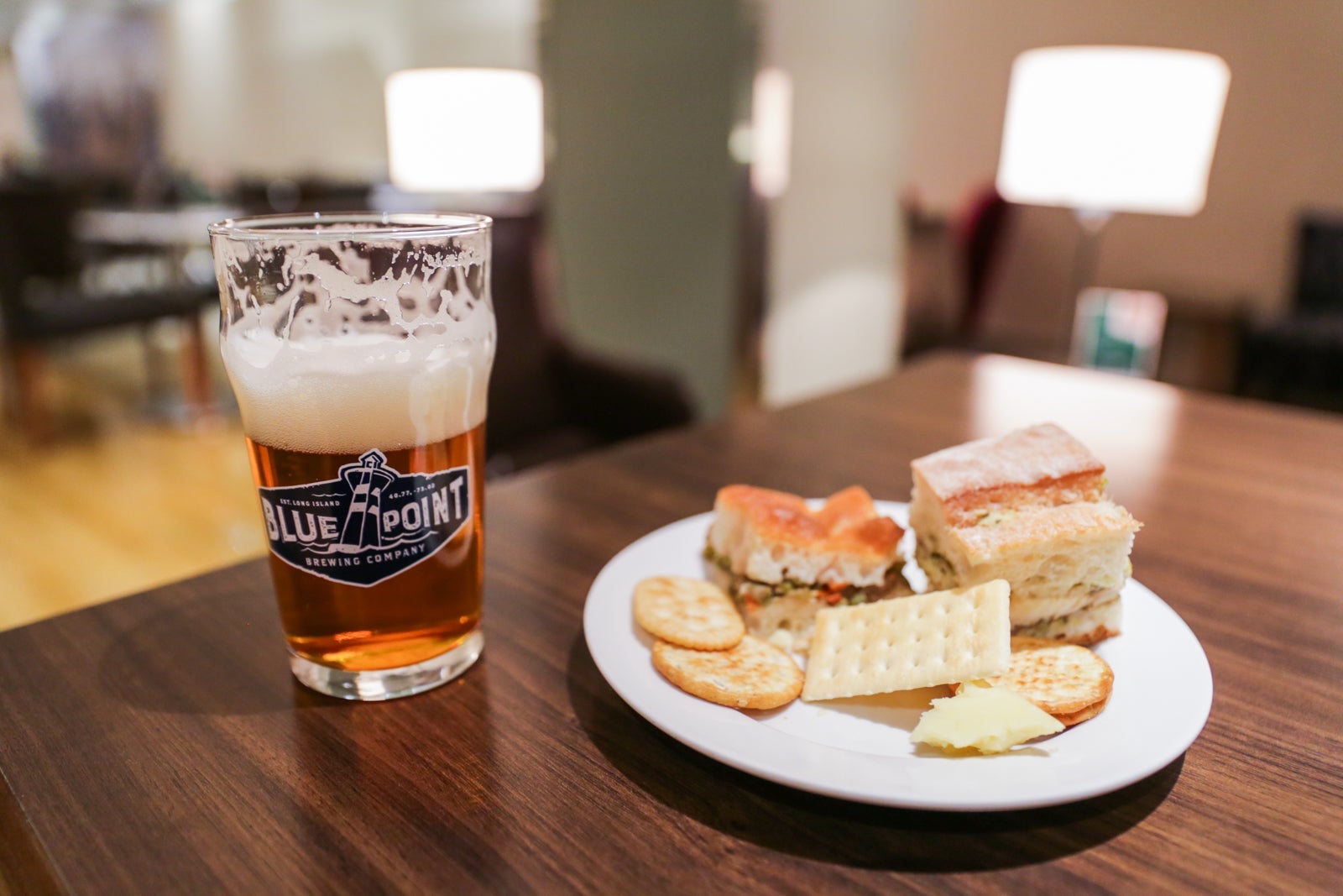 In one corner of the lounge there was a "pub" with a variety of bottled beers (Brooklyn lager, Coors and O'Doul's) but also two beers from Blue Point Brewing (from Patchogue, New York) on tap. I filled up a glass with the toasted lager, which hit the spot after a full day of work.