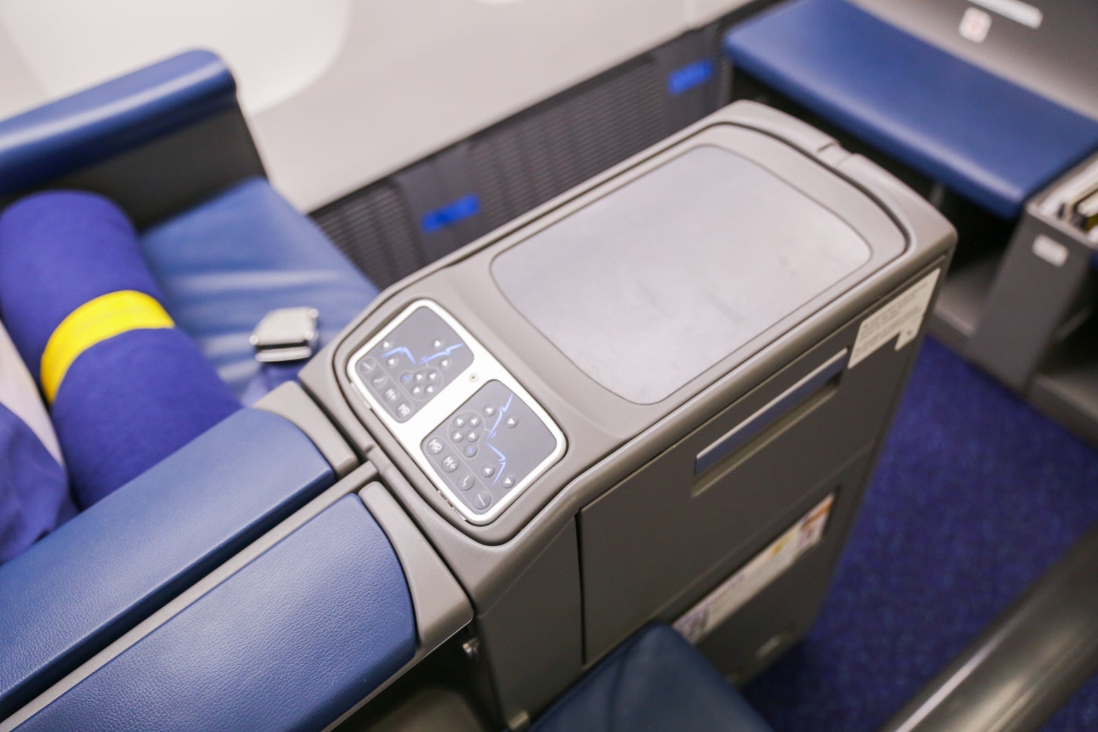 There was a large armrest that extended out if you needed to store or charge anything (power and USB ports were available) and allowed you to grab the inflight-entertainment remote. When raised, it could also act as a divider for more privacy.
