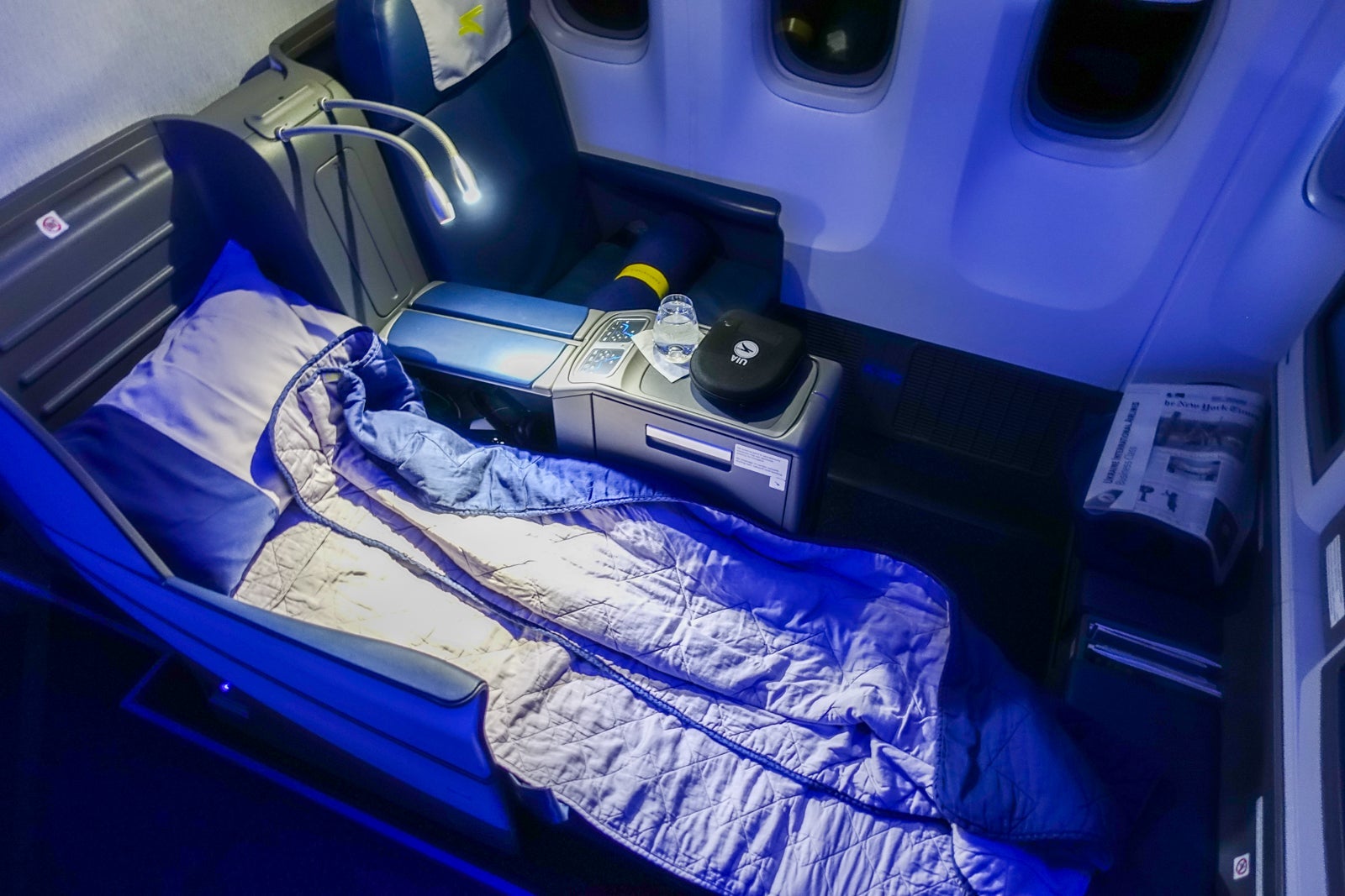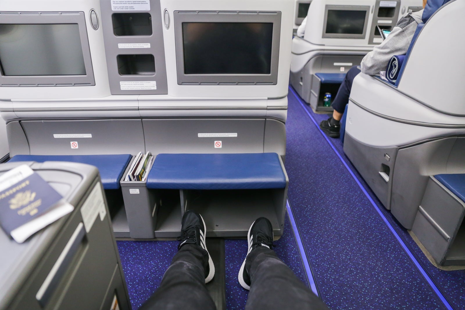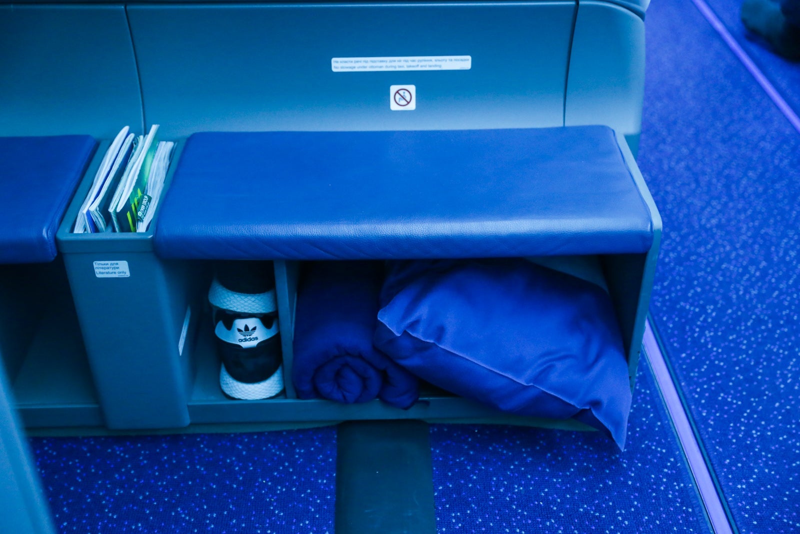In bed mode, the seat easily lived up to expectations: perfectly comfortable, plenty wide( so you can easily toss and turn if you're that kind of sleeper), and long enough that tall folks (think TPG) could stretch out without having to hit the seat in front of them. You could store your shoes and other personal items under the footwell in a spacious cubby.