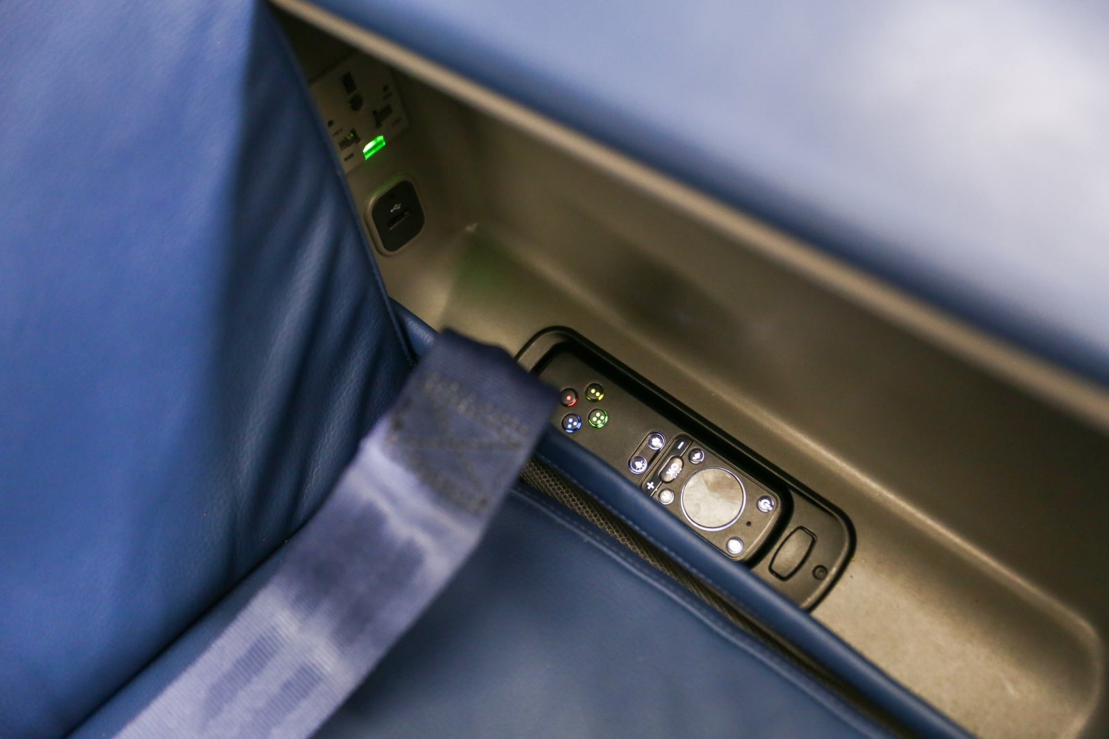 This space doubled as a great place to put drinks, and I found the seat controls there too. An adjustable reading light above my shoulder came in handy on the red-eye journey.