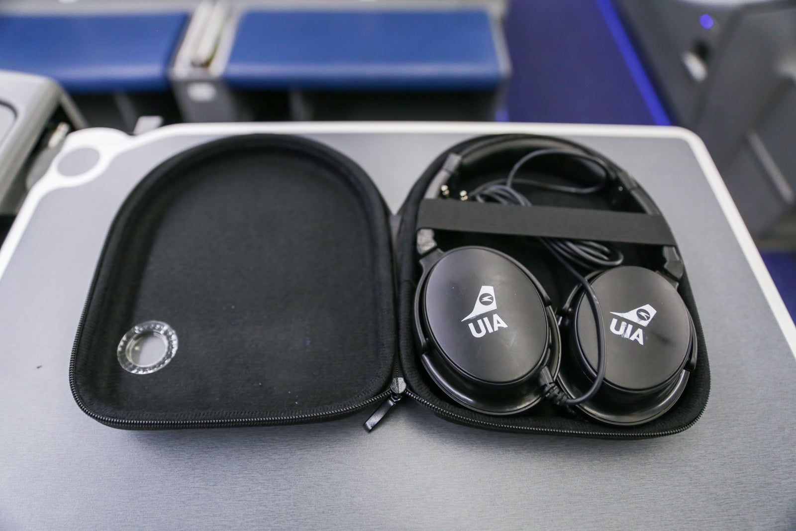 Business-class passengers received noise-canceling headphones. Though they were comfortable to wear, the noise-canceling aspect didn't work very well. It muffled the drone from the 777's Pratt & Whitney engines but wasn't the audio you'd experience with a better pair. But unless you have a three-pinned headphones jack, you're going to be stuck using these on the flight.