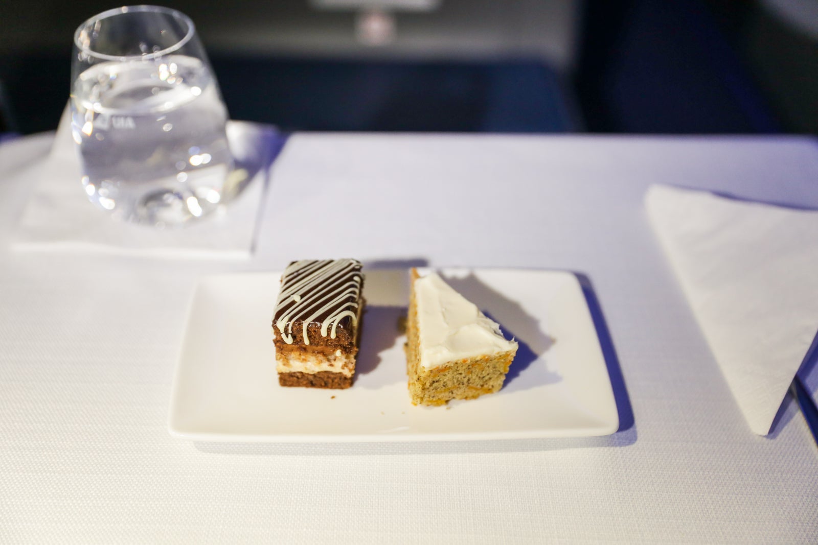 Another miscommunication occurred with dessert service: I could see all the other business passengers had been served dessert, but I had not. The crew promptly apologized and brought out a tiny piece of chocolate-mousse cake and carrot cake, both of which were sweet and moist.