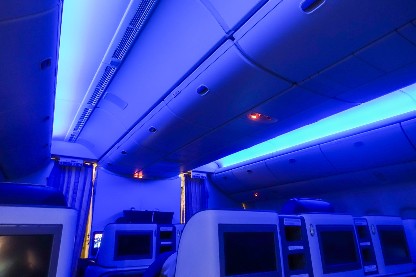 The mood lighting throughout the aircraft helped guide my way down the aisle when everyone else was sleeping but still wasn't bright enough to wake me when it was me snoozing.
