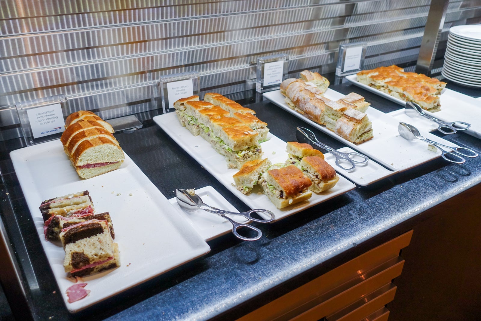 The food options were limited, and it appeared that the lounge staff was slowly shutting down the space so they could go home. I scoured the place for sustenance and only found tiny sandwiches, cheese, crackers and cookies.