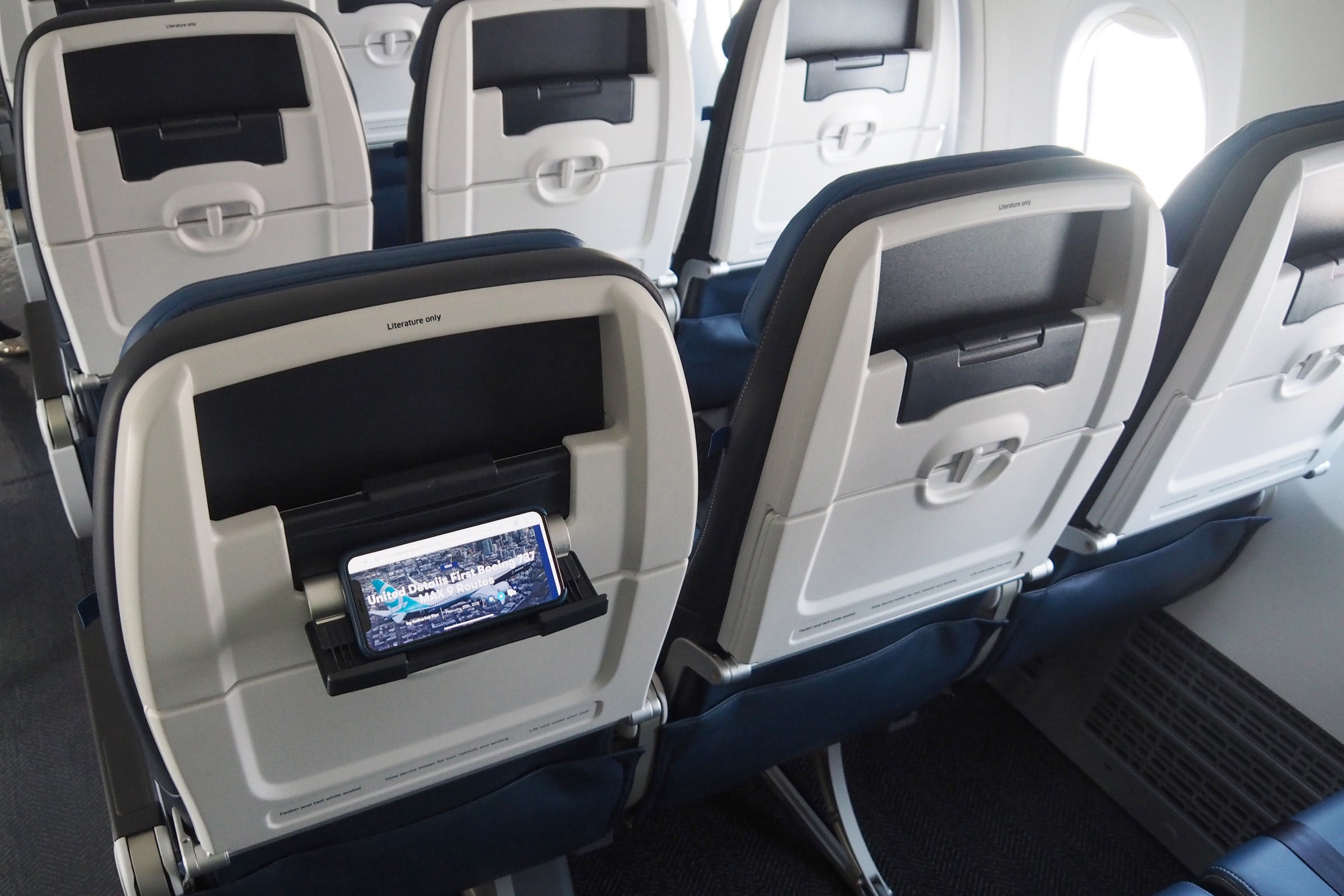 Much to the disappointment of passengers who have come to love the convenience of seat-back in-flight entertainment systems, United's MAX doesn't have one at all — customers in both cabins are limited to the free streaming entertainment available through the United app (on a mobile device) or website (on your laptop).