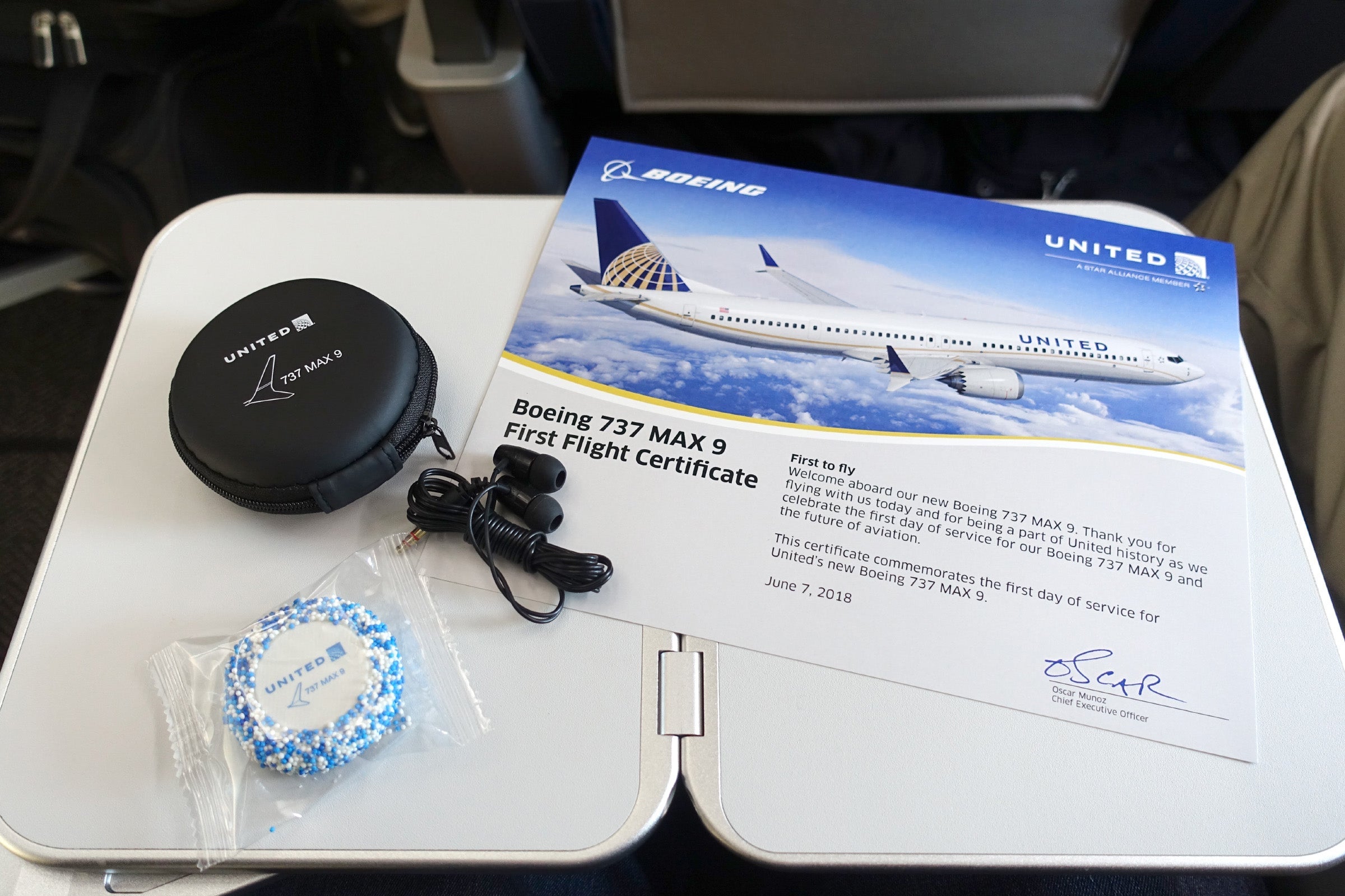 As part of the inaugural-flight festivities, all passengers received a certificate, branded headphones and a cookie. Additionally, MileagePlus members 18 years and under on Thursday's MAX flights will each receive 737 bonus miles to celebrate the launch.